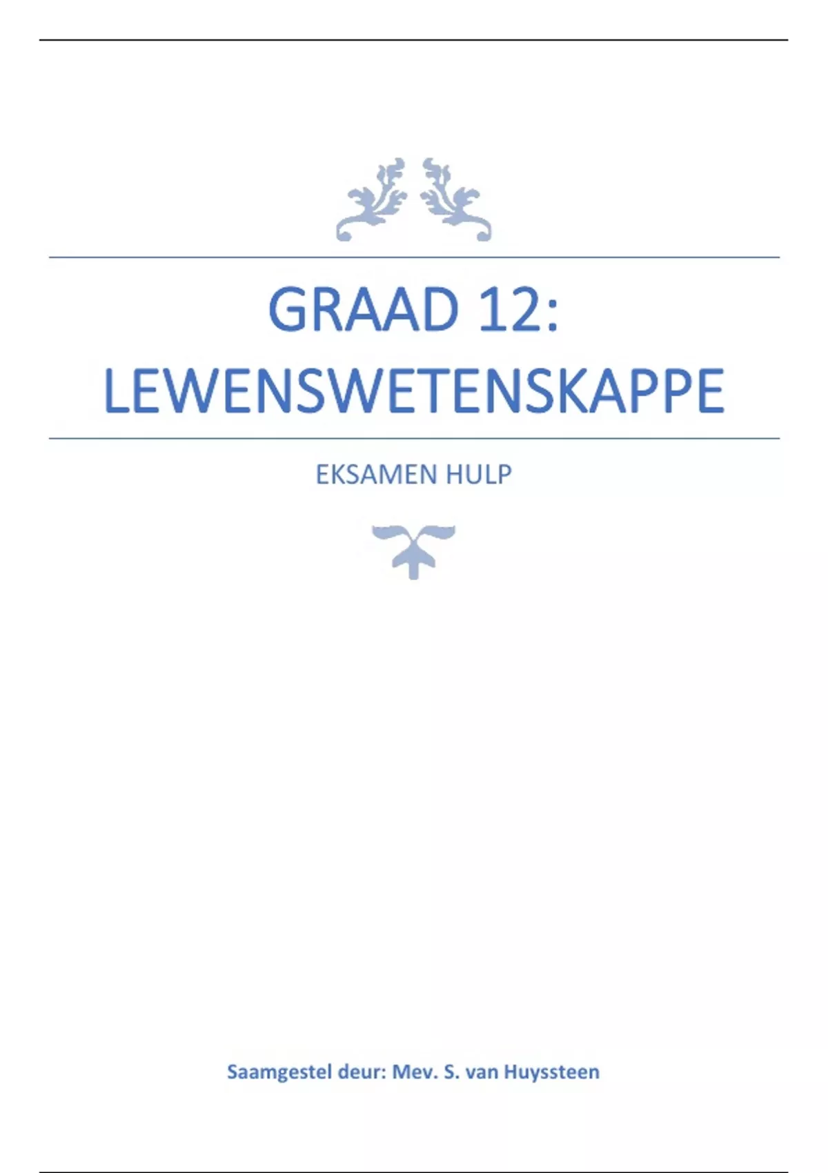 Summary Lewenswetenskappe Eksamen Notas vir Graad 12 Leerders