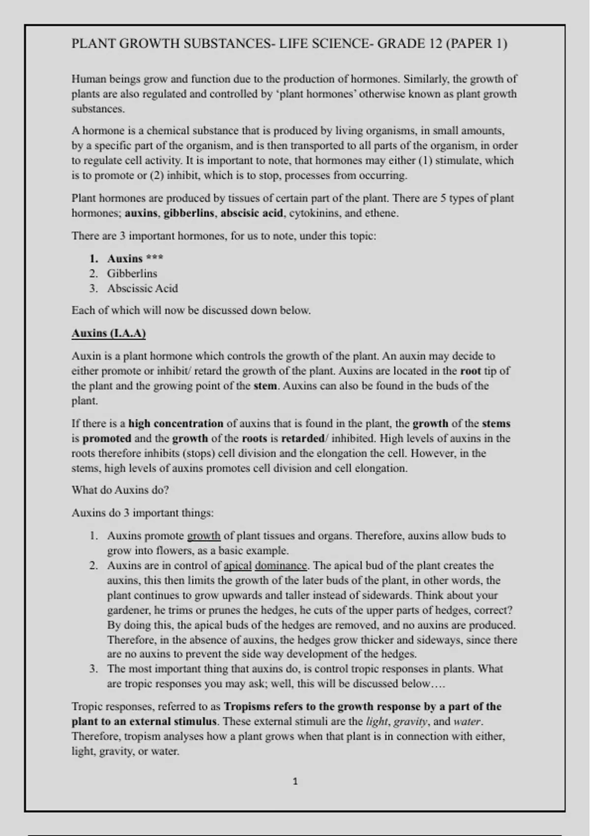 PLANT GROWTH SUBSTANCES- LIFE SCIENCE- GRADE 12 (PAPER 1)