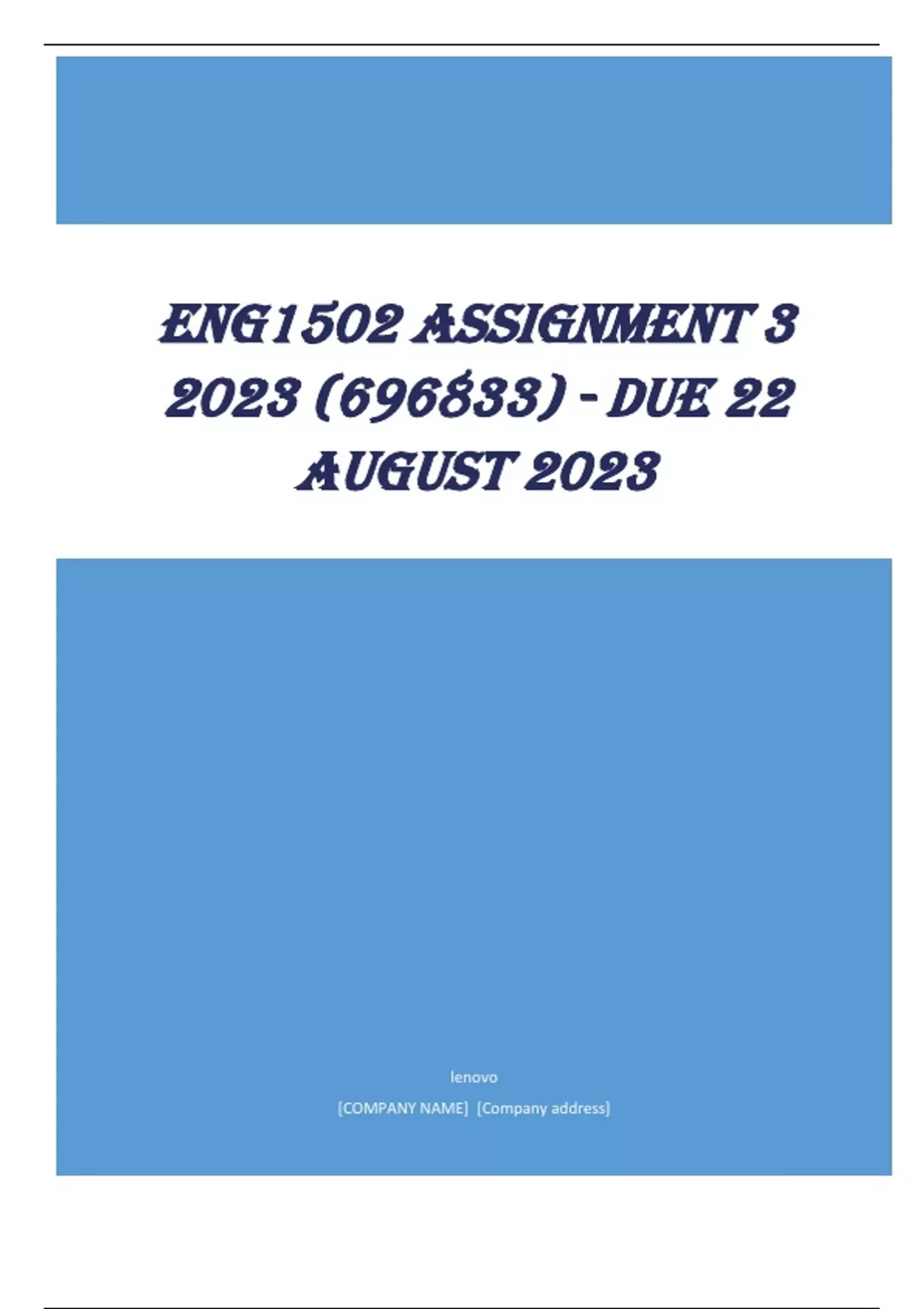 ENG1502 Assignment 3 2023 (696833) - DUE 22 August 2023