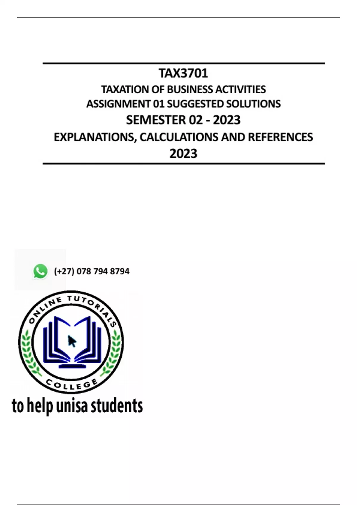 materials you can call or WhatsApp the module code for