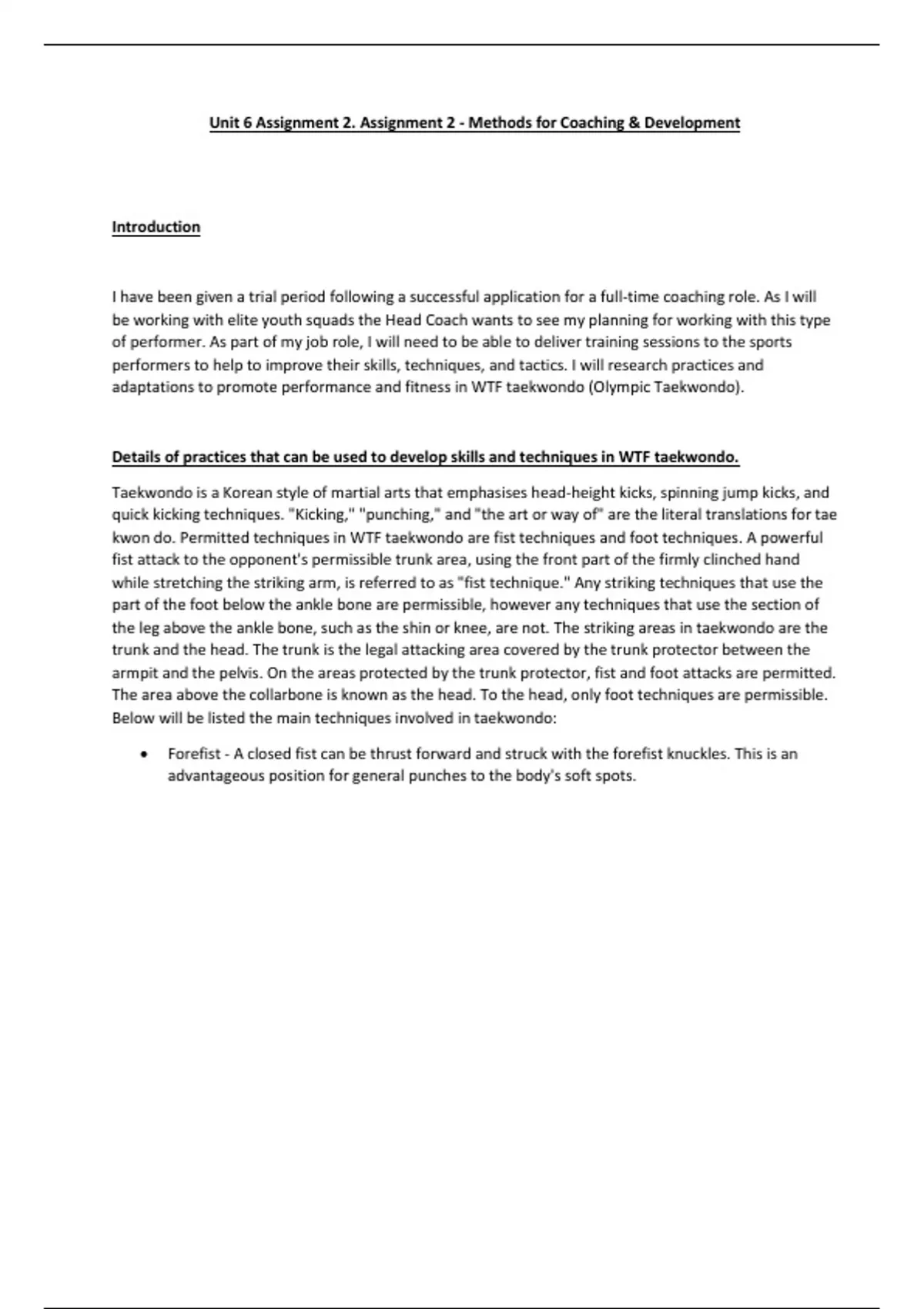 of performer. As part of my job role, I will need to be able to deliver training sessions to the sports