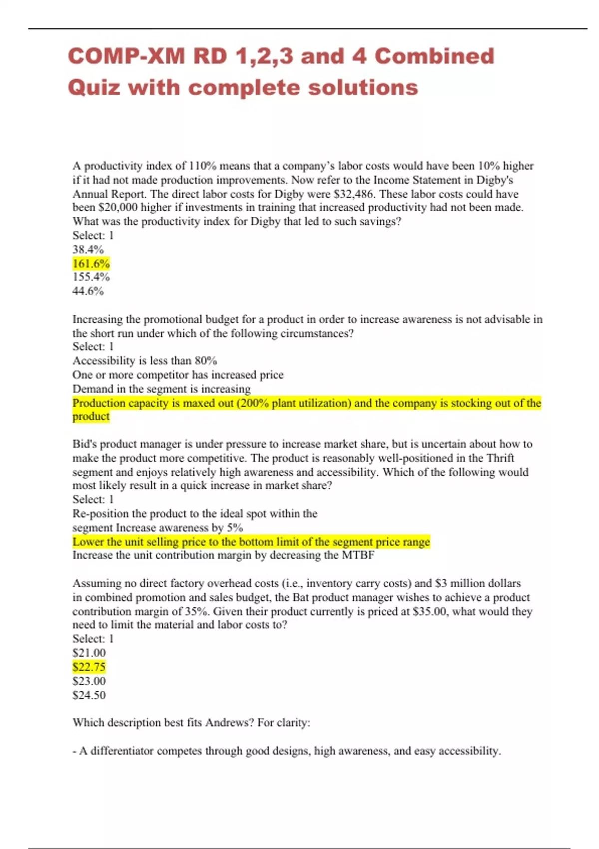 COMP-XM RD 1,2,3 and 4 Combined Quiz with complete solutions