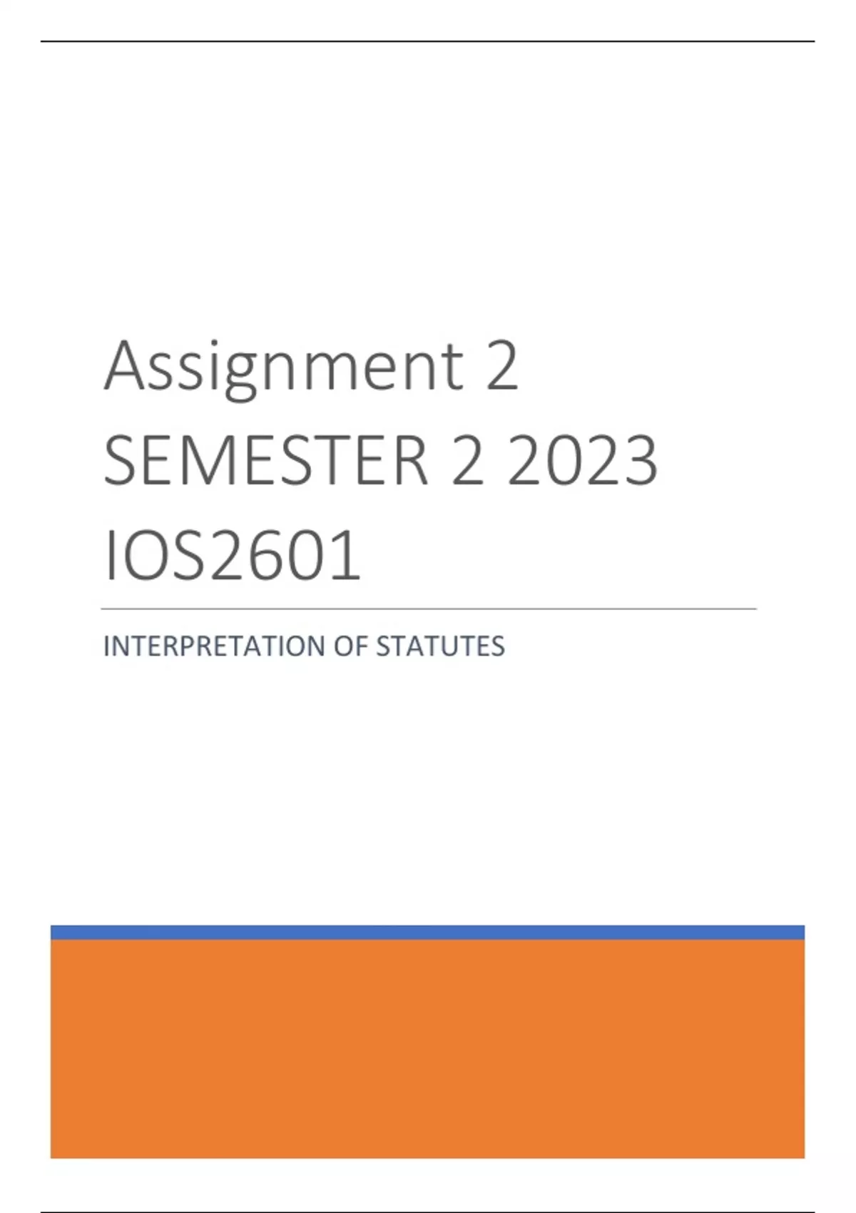 2023 SEMESTER 2 ASSIGNMENT 1 ANSWERS - Interpretation Of Statutes (IOS2601)