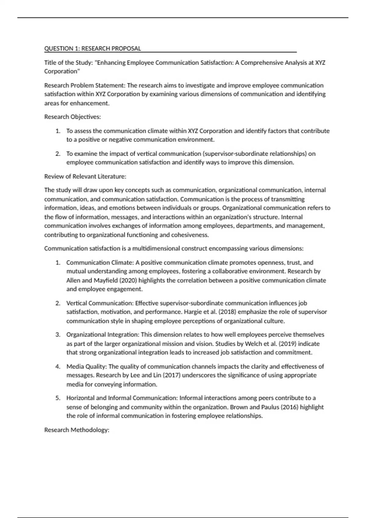 Title of the Study: "Enhancing Employee Communication Satisfaction: A Comprehensive Analysis at XYZ