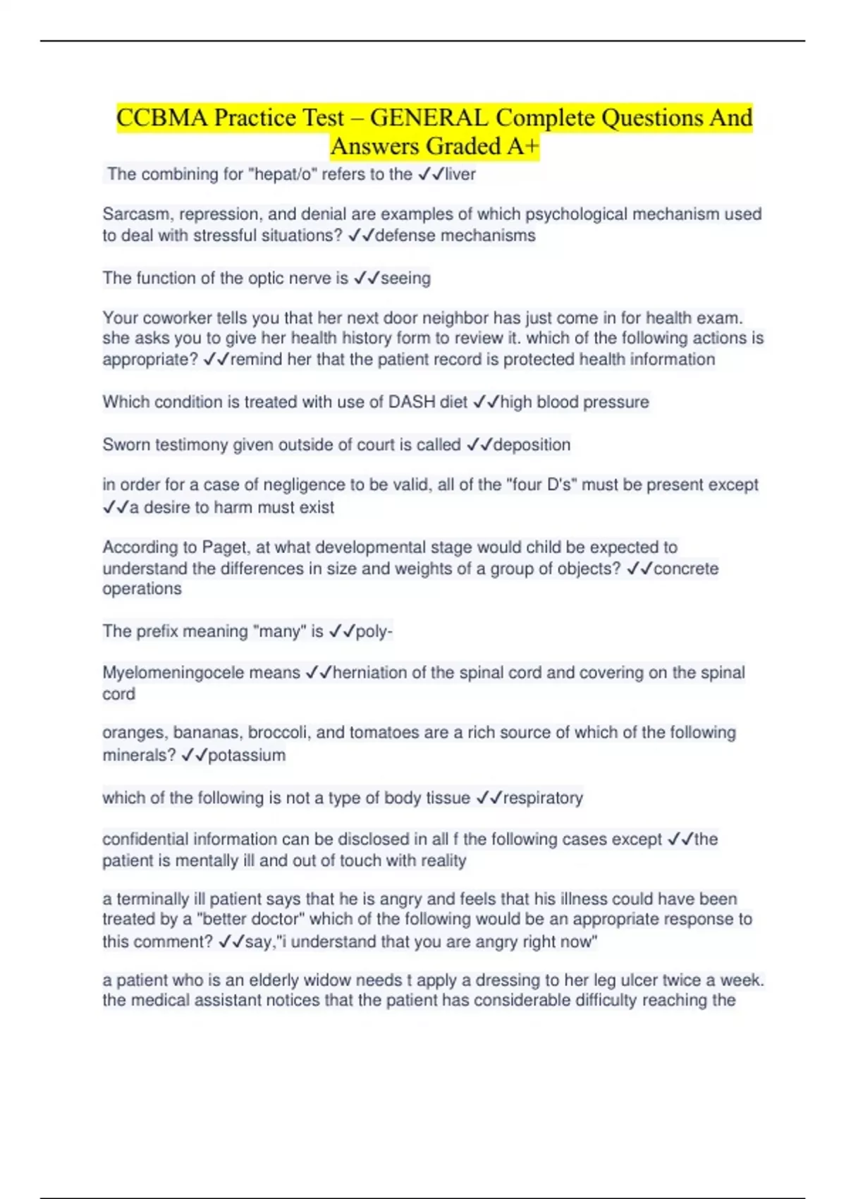 CCBMA Practice Test – GENERAL Complete Questions And Answers Graded A+ CCBMA Practice Test – GENERAL Complete Questions And Answers Graded A+