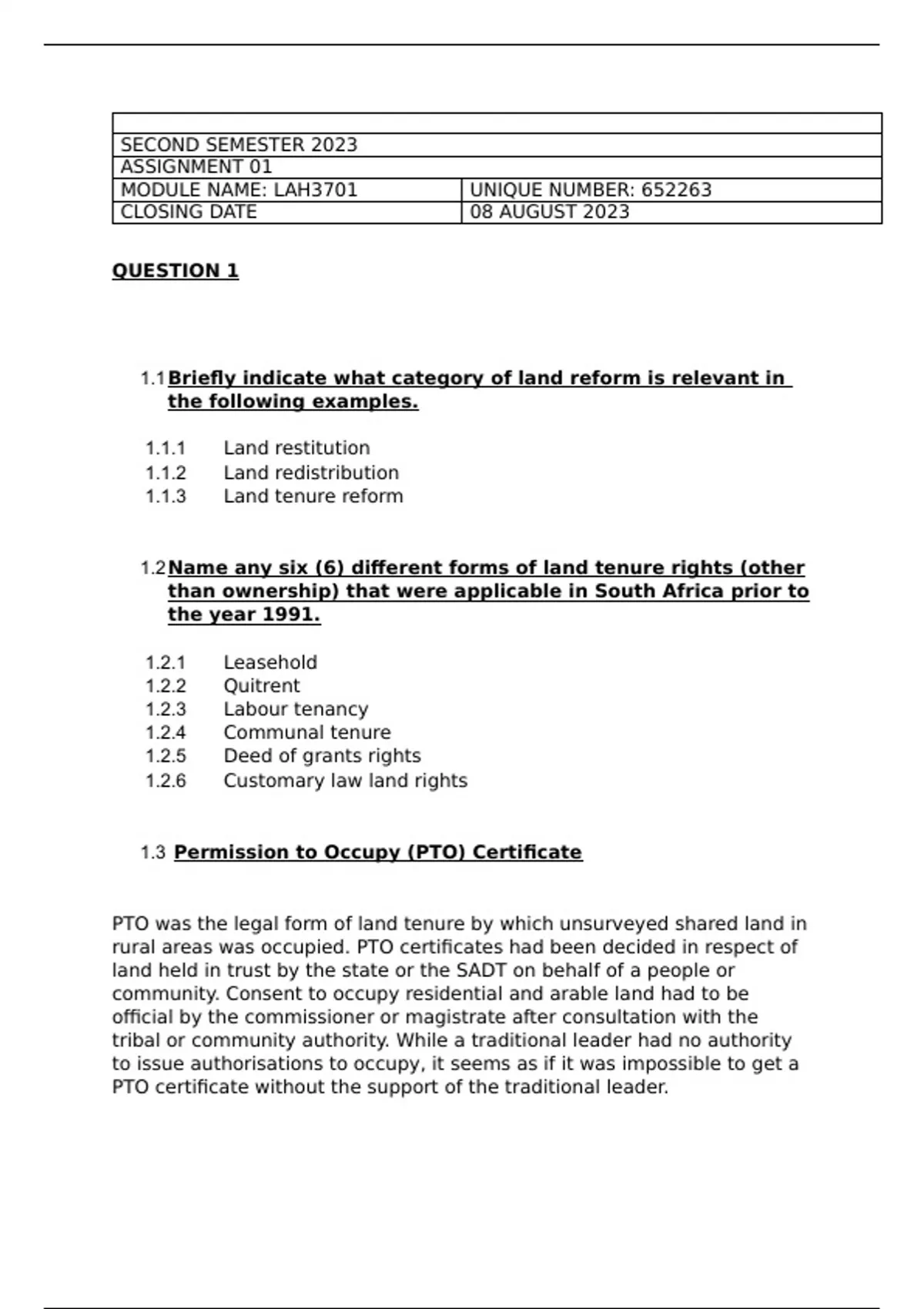 MODULE NAME: LAH3701 UNIQUE NUMBER: 652263