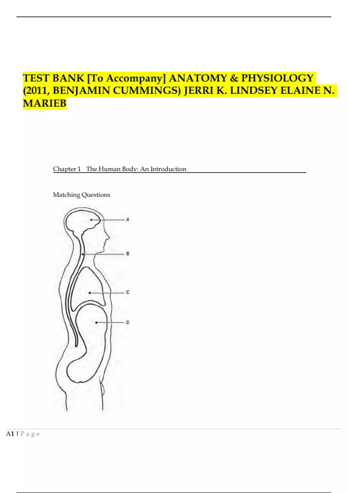TEST BANK [To Accompany] ANATOMY & PHYSIOLOGY (2011, BENJAMIN CUMMINGS) JERRI