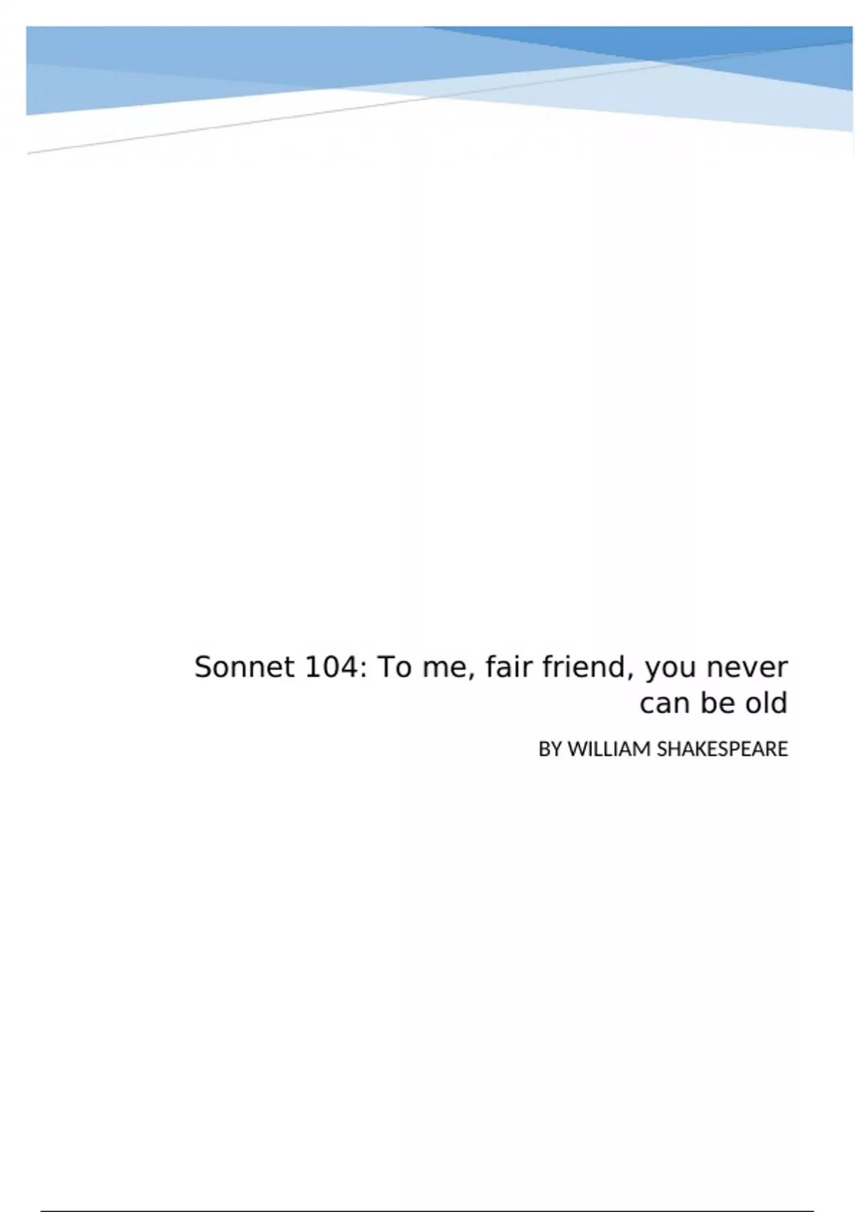 The title of the sonnet is "Sonnet 104: To me, fair friend, you never can be old." This title