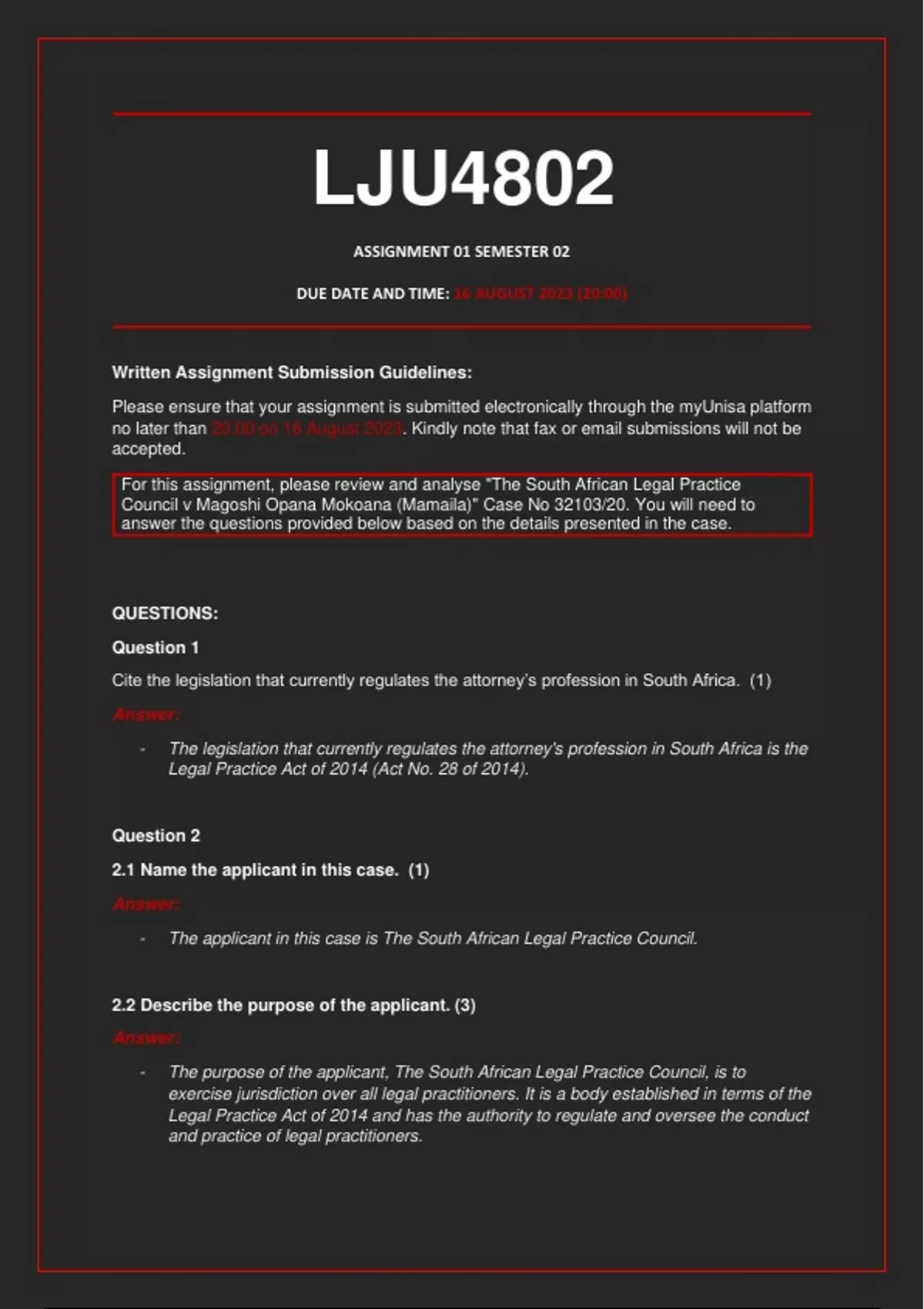 Please ensure that your assignment is submitted electronically through the myUnisa platform