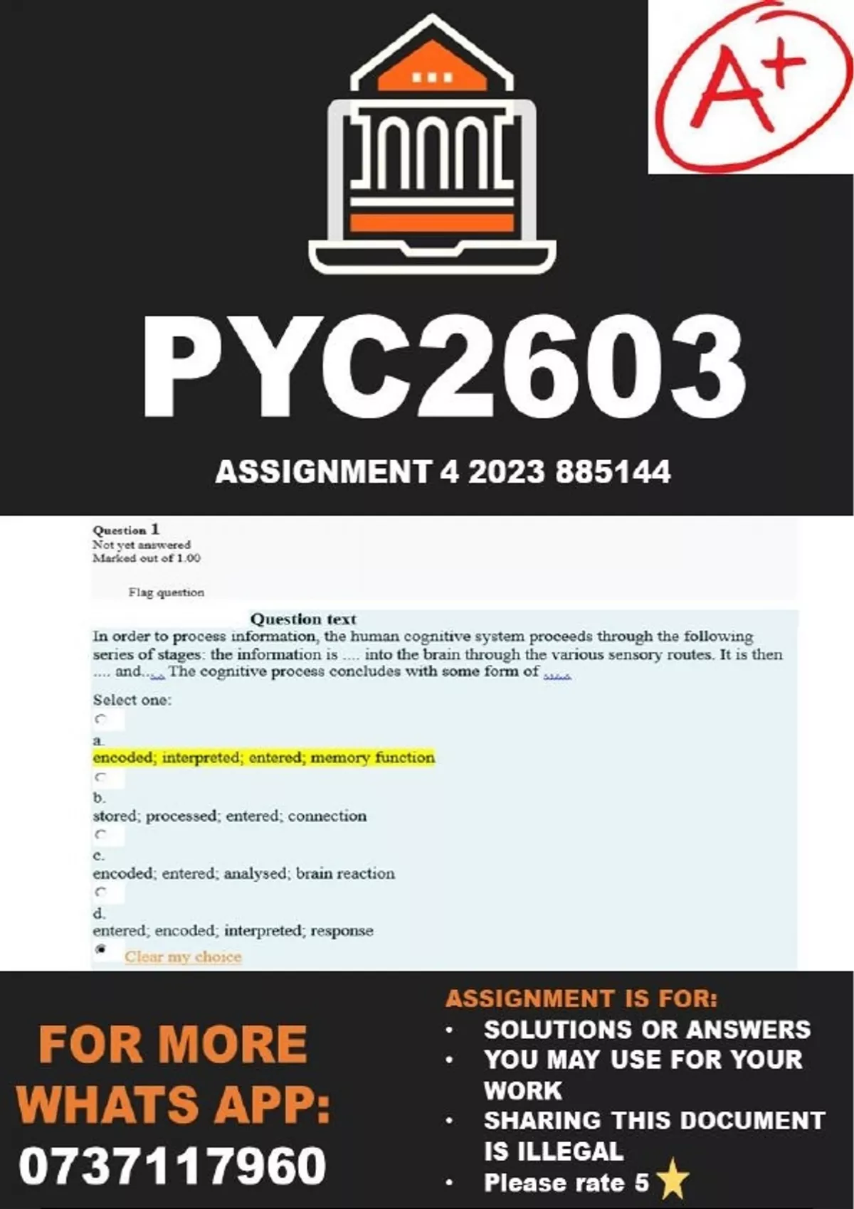 .... into the brain through the various sensory routes. It is then .... and... . The cognitive process concludes with some form of … .