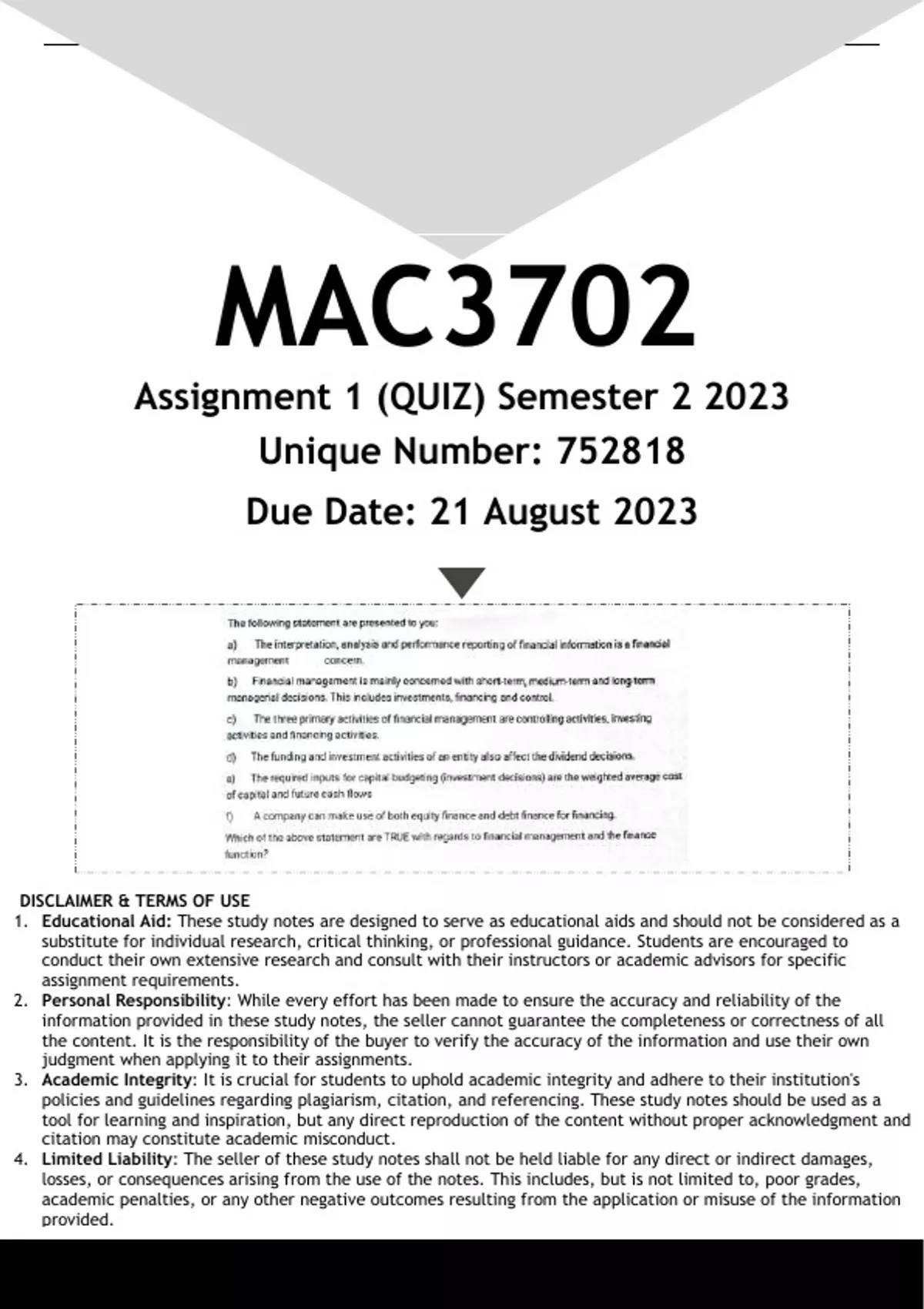 MAC3702 Assignment 1 (ANSWERS) Semester 2 2023 - DISTINCTION GUARANTEED.