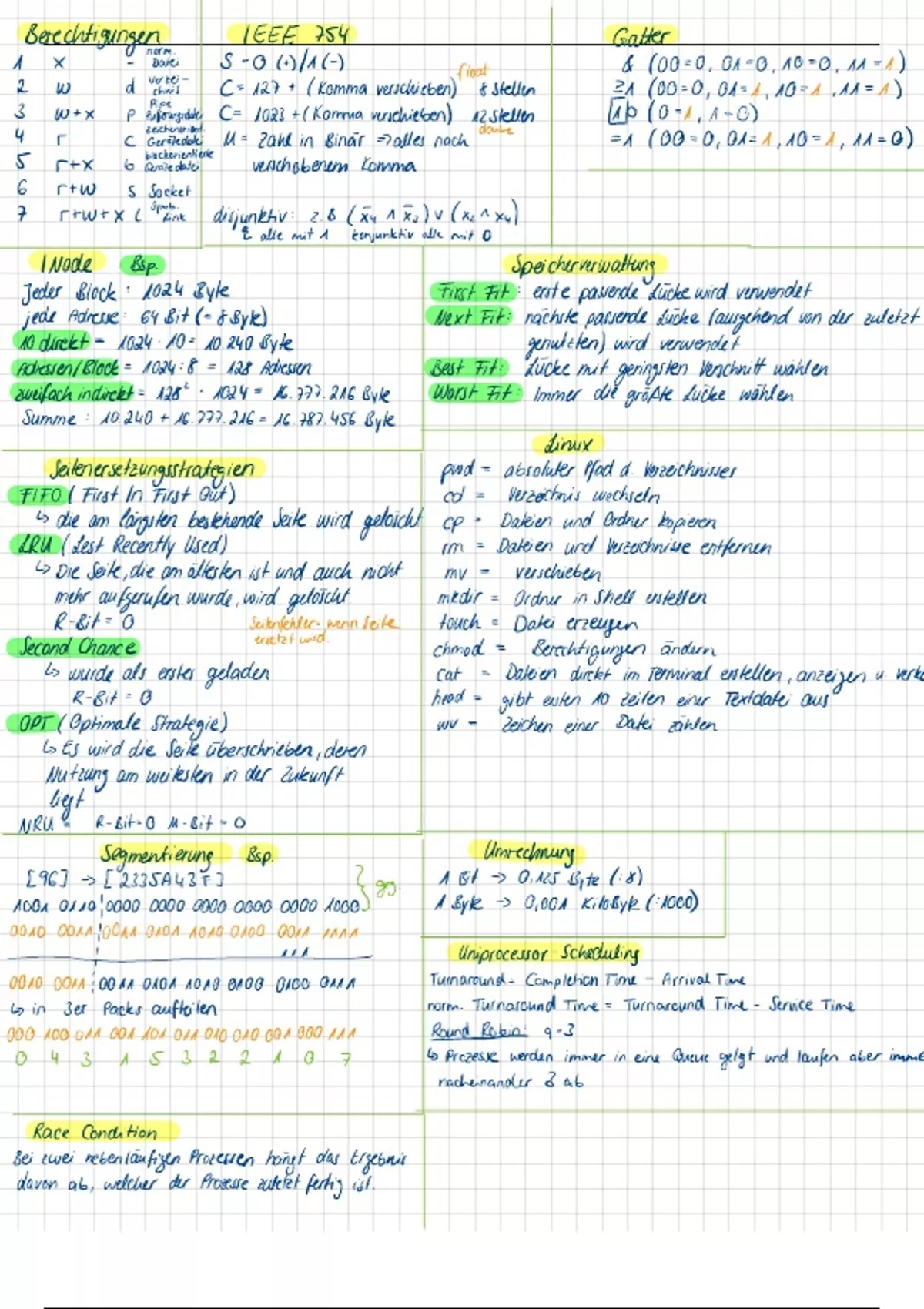 Eine zweiseitige Zusammenfassung des Moduls Rechnerarchitektur und Betriebssysteme, welche auch mit in die Prüfung mitgenommen werden durfte.