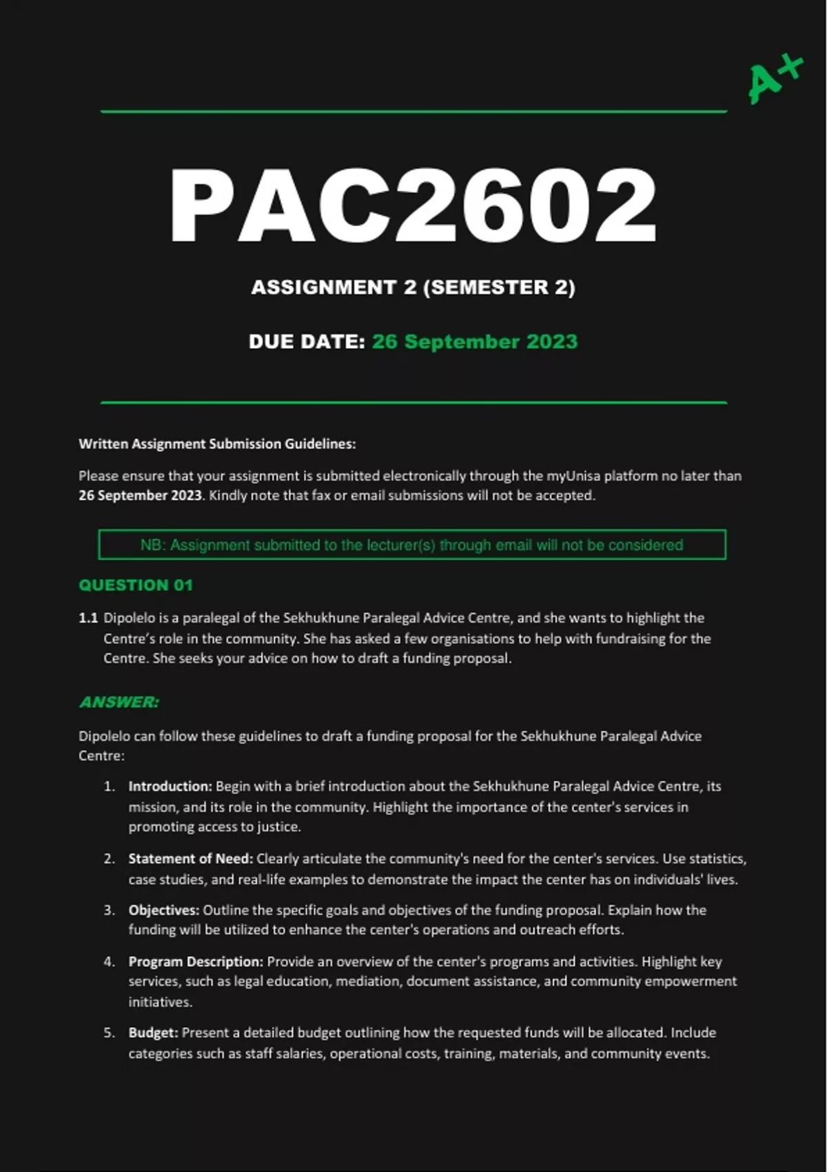 PAC2602 Assignment 2 Semester 2 (26 September 2023)