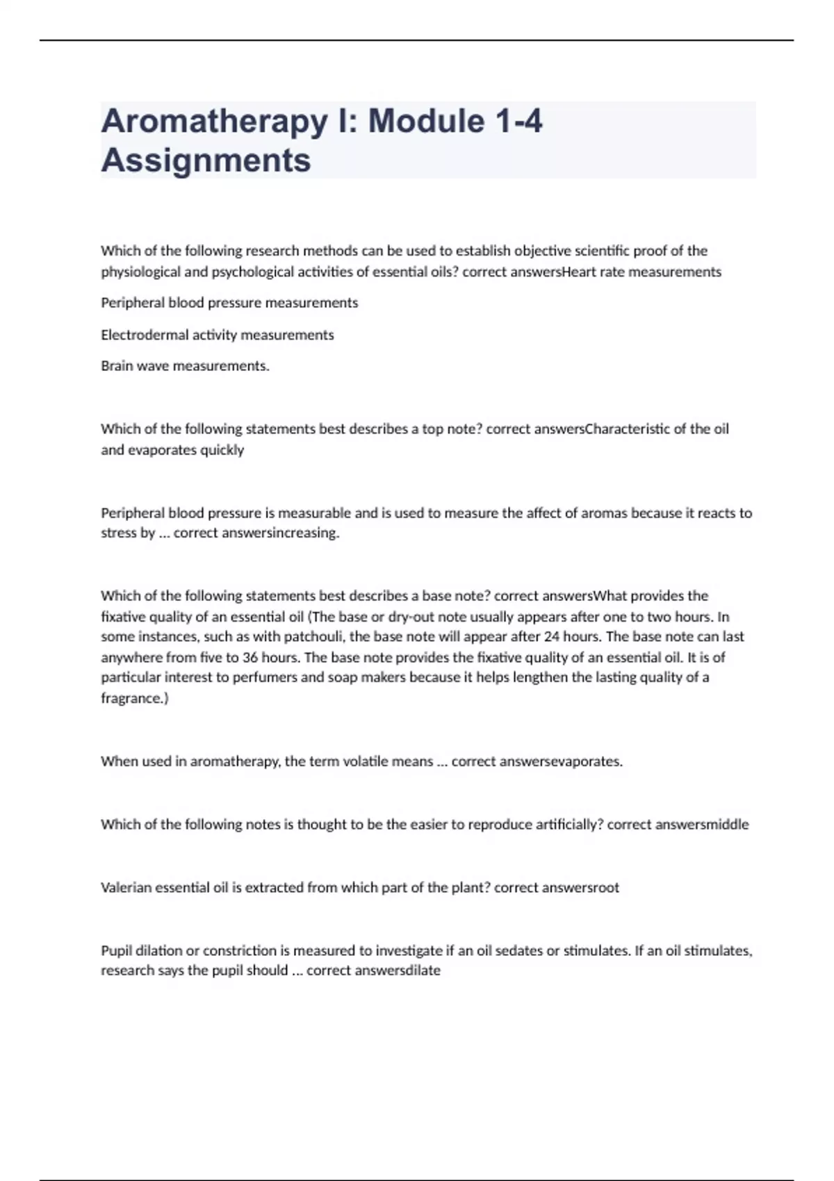Aromatherapy I: Module 1-4 Assignments exam 2023 with 100% complete solutions