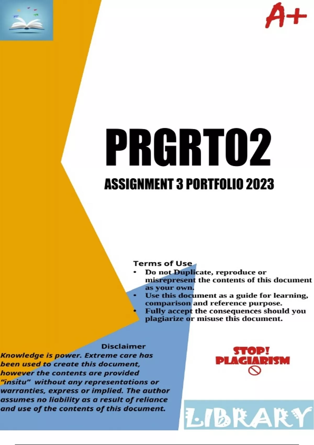 PRGRT02 Assignment 3 (DETAILED ANSWERS) Portfolio 2023 () - DUE 1 SEPTEMBER 2023 100% TRUSTED workings, explanations and solutions. For assistance call or us on .