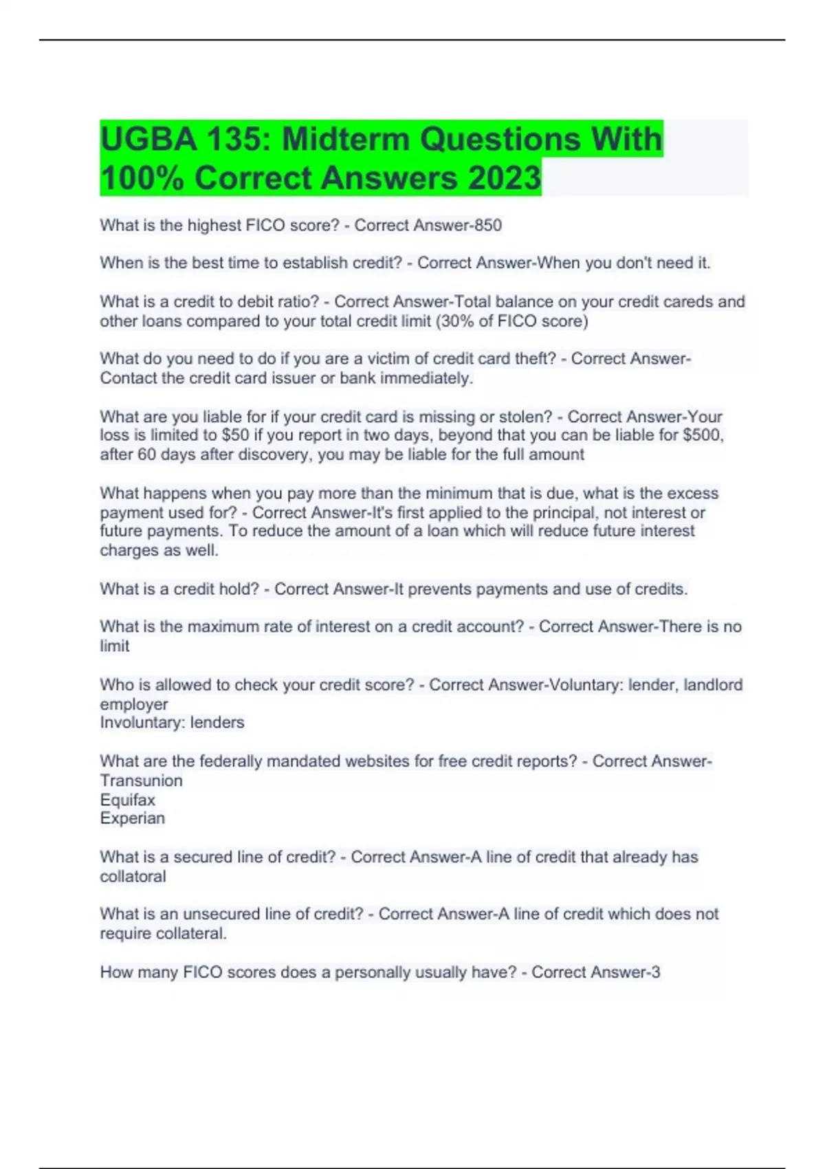 ugba 135 midterm questions with 100 correct answ