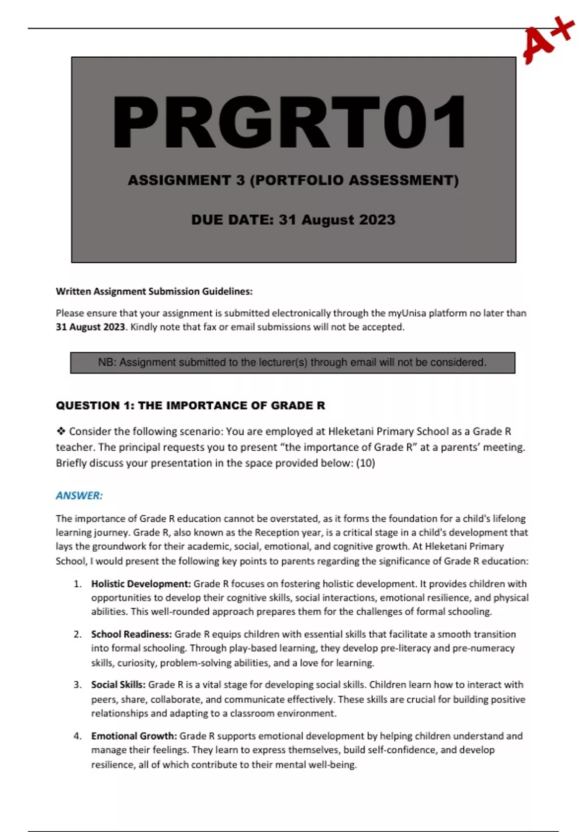 QUESTION 1: THE IMPORTANCE OF GRADE R