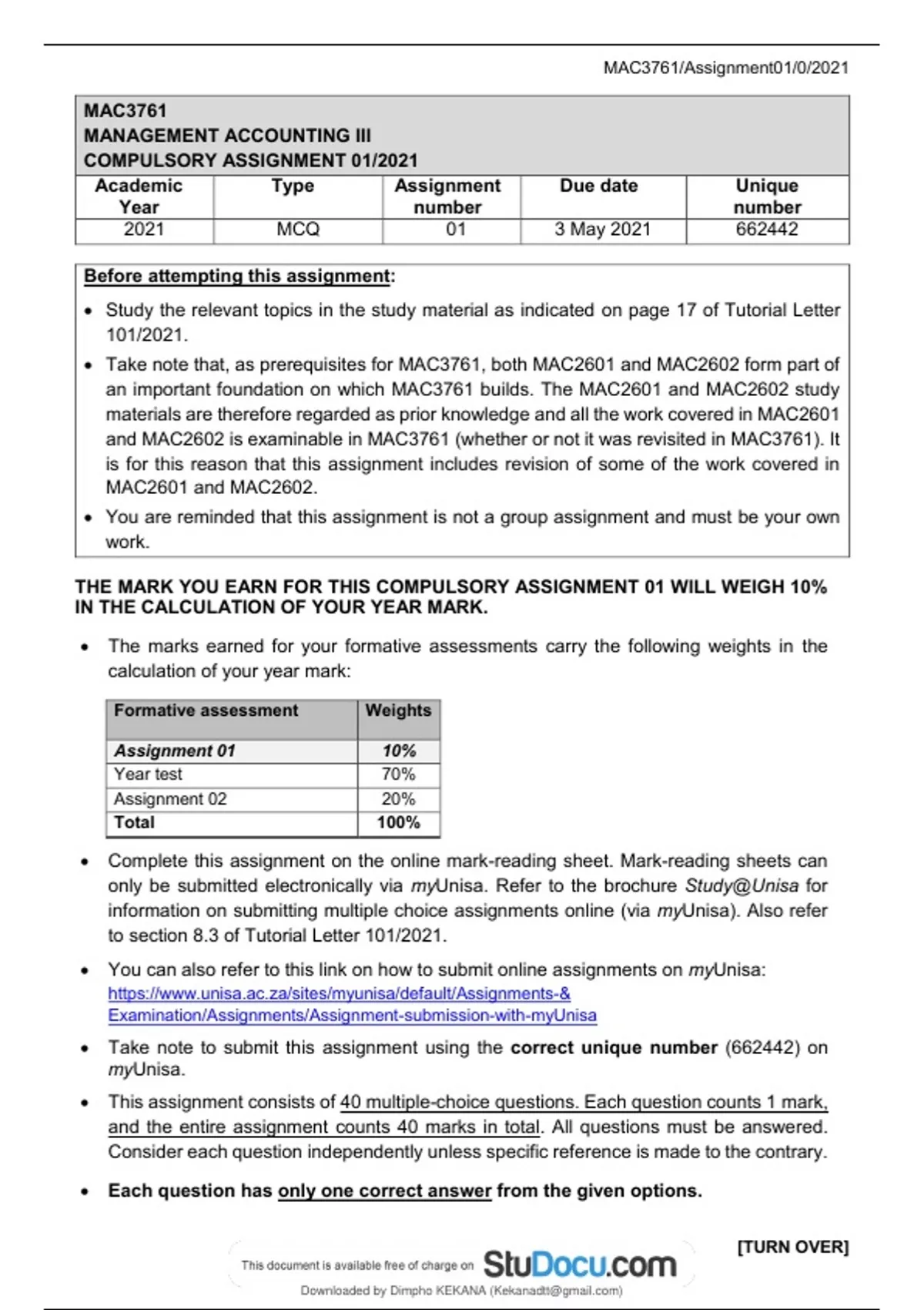 mac3761 2021 assignment 1 questions and solution