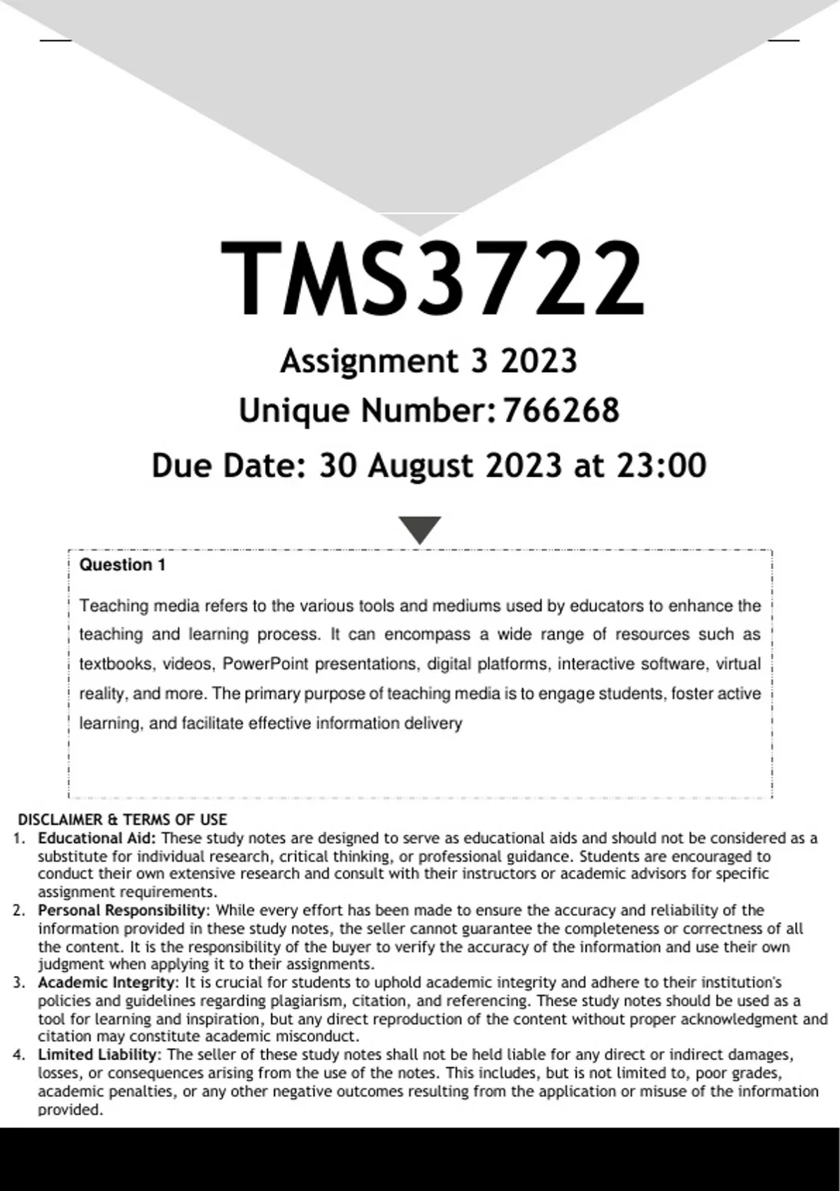 4. Limited Liability: The seller of these study notes shall not be held liable for any direct or indirect damages,