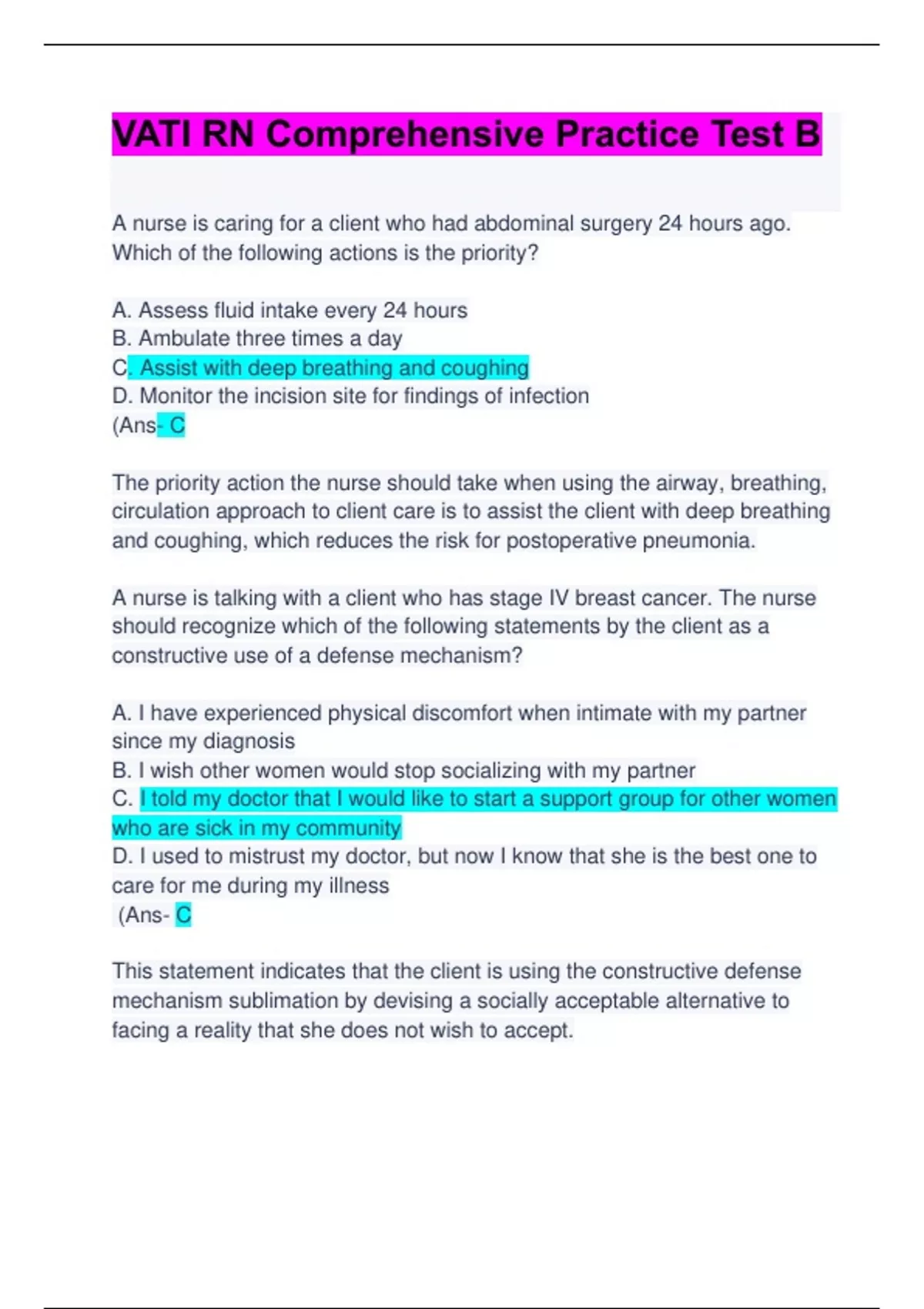 VATI RN Comprehensive Practice Test B Questions & Answers Updated RATED A+