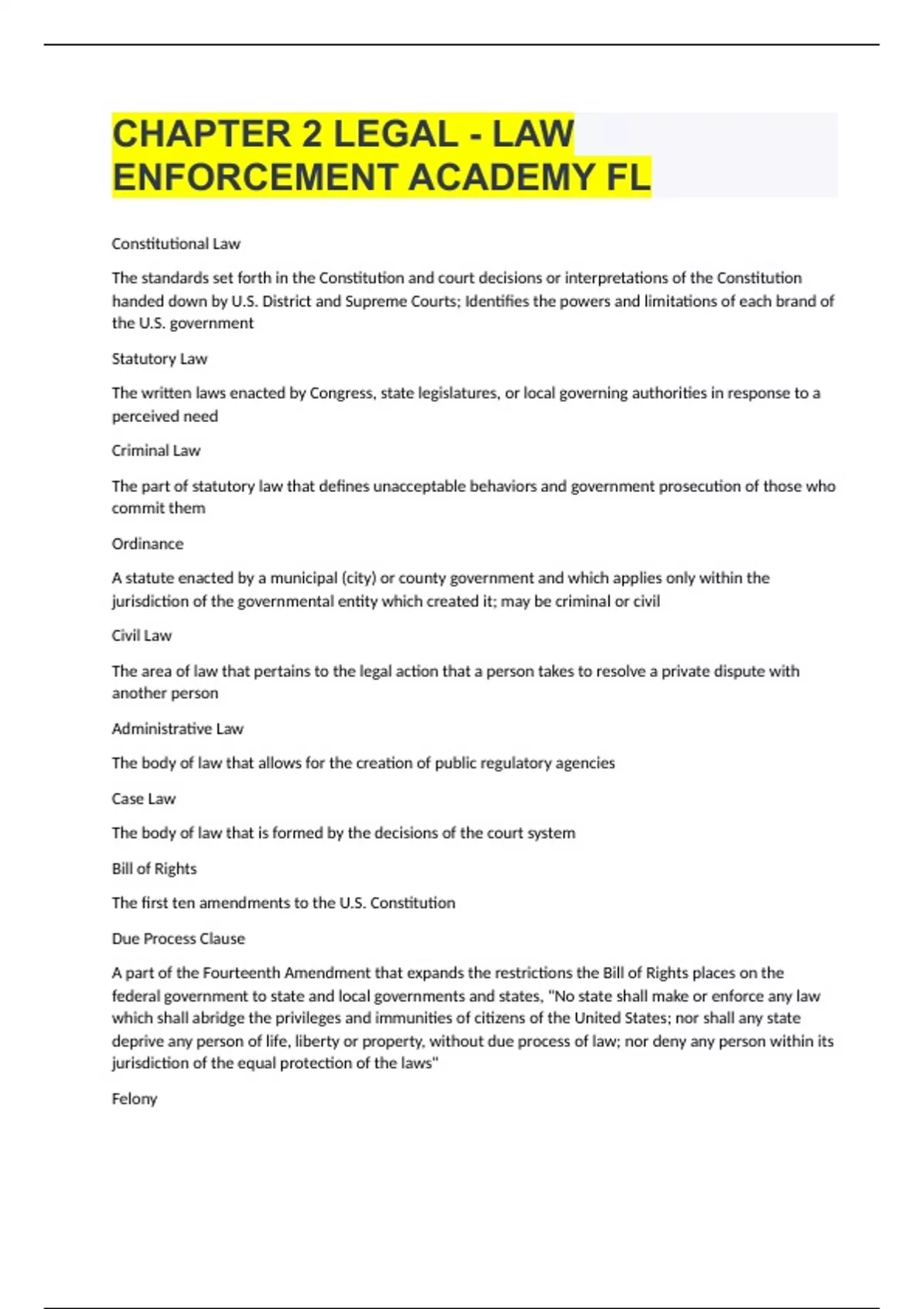 CHAPTER 2 LEGAL - LAW ENFORCEMENT ACADEMY FL 2023/24 UPDATE|GUARANTEED SUCCESS