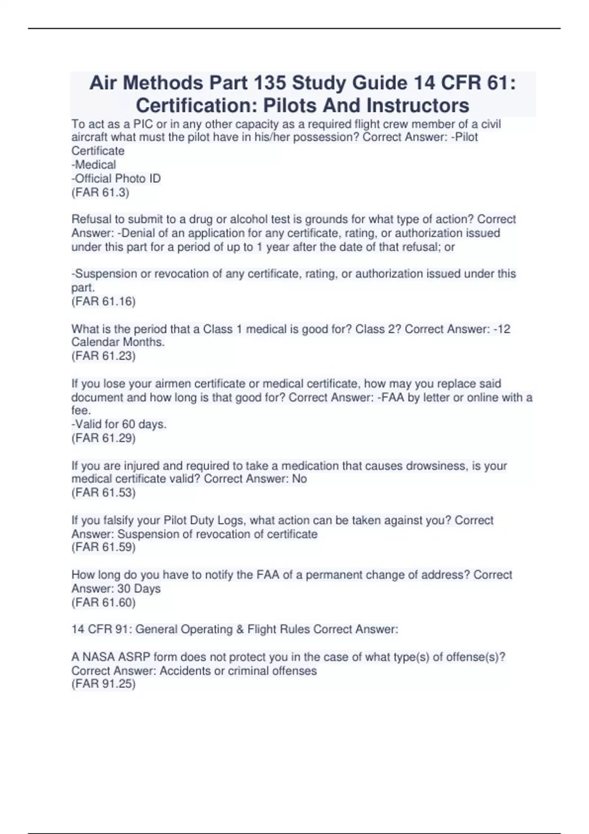 Air Methods Part 135 Study Guide 14 CFR 61: Certification: Pilots And Instructors