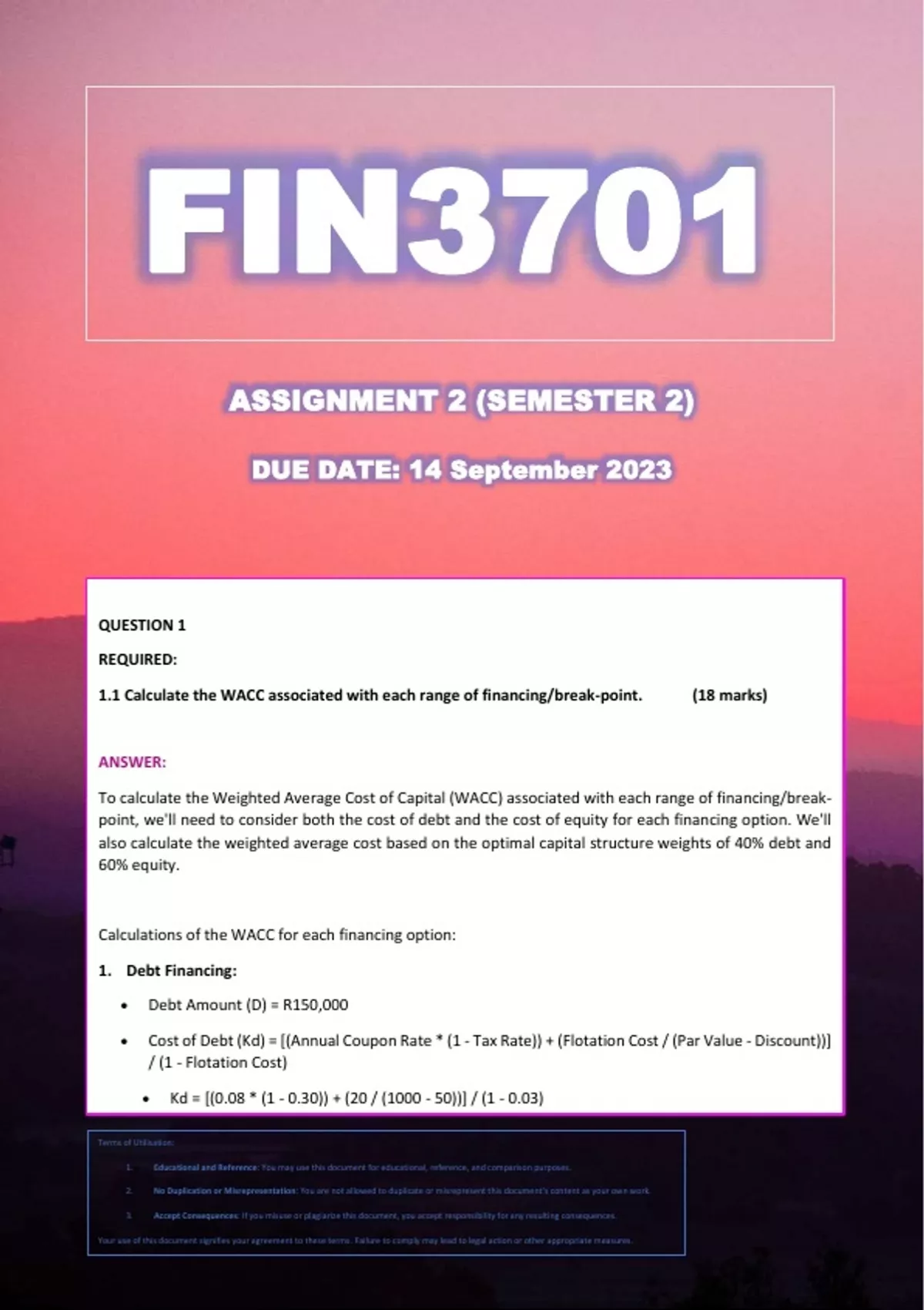 FIN3701 Assignment 2 (Semester 2)Answers - Due: 14 September 2023