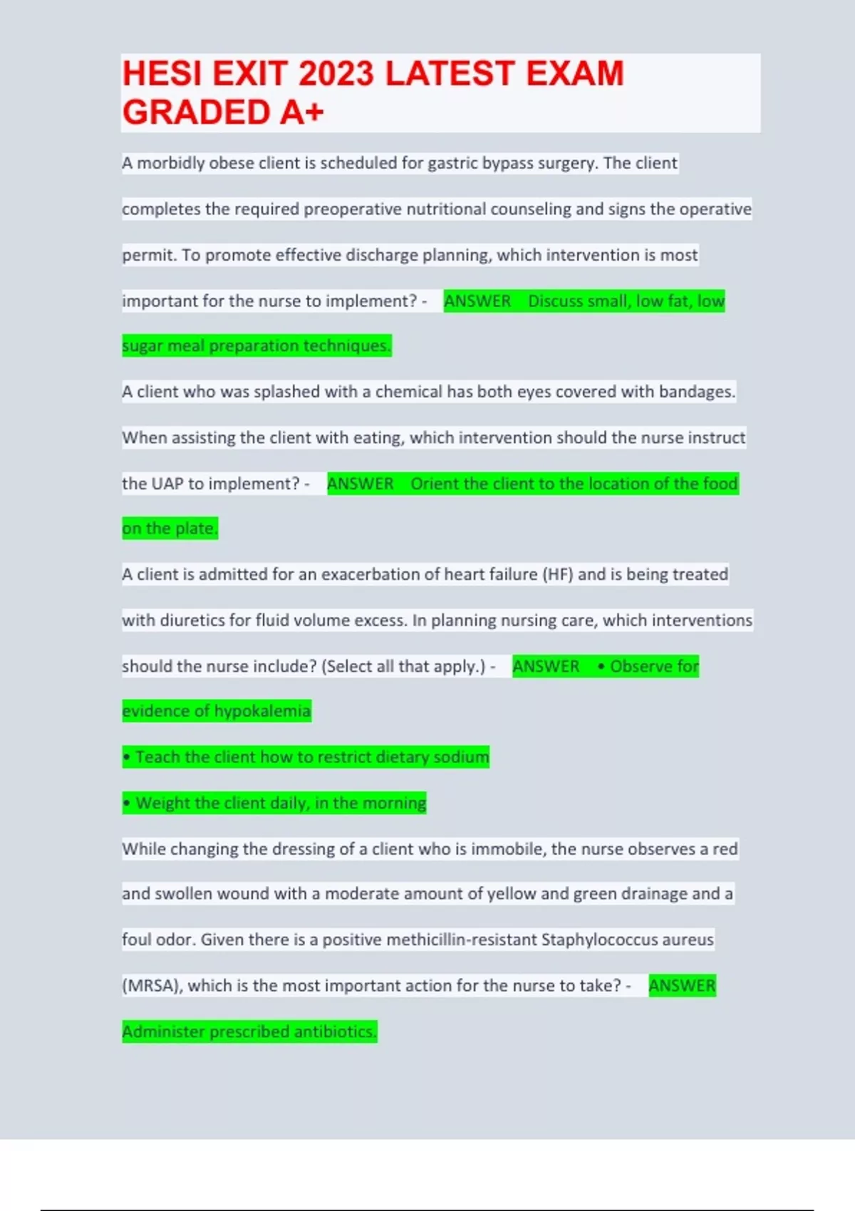 HESI EXIT 2023 LATEST EXAM GRADED A+