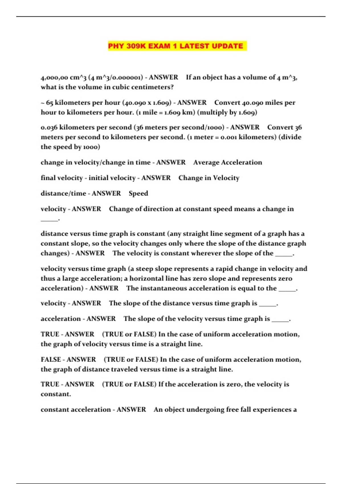 PHY 309K EXAM 1 LATEST UPDATE ...