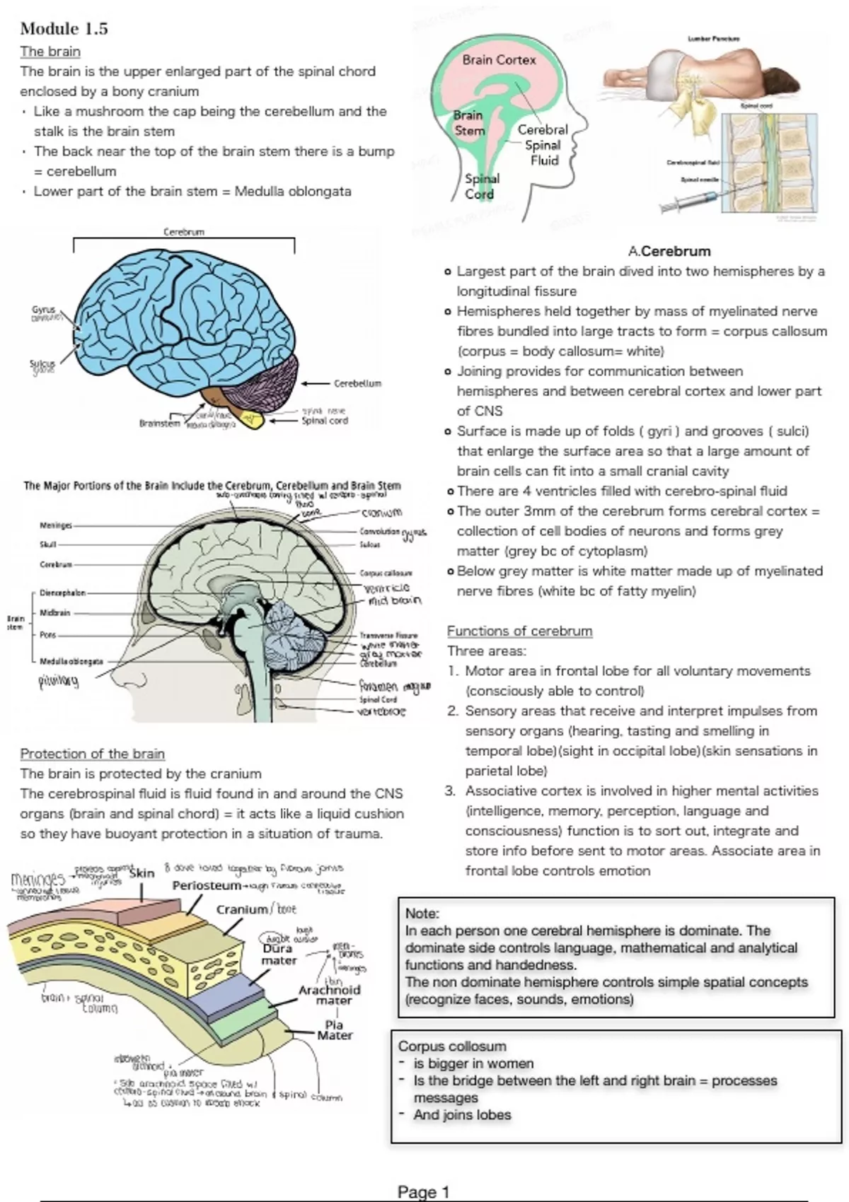 Summary of grade 11 biology the brain in module 1.5 of ieb textbook. Notes include pictures and diagrams to assist with studying. Notes are informative and detailed and are comprised using textbook and in class notes.