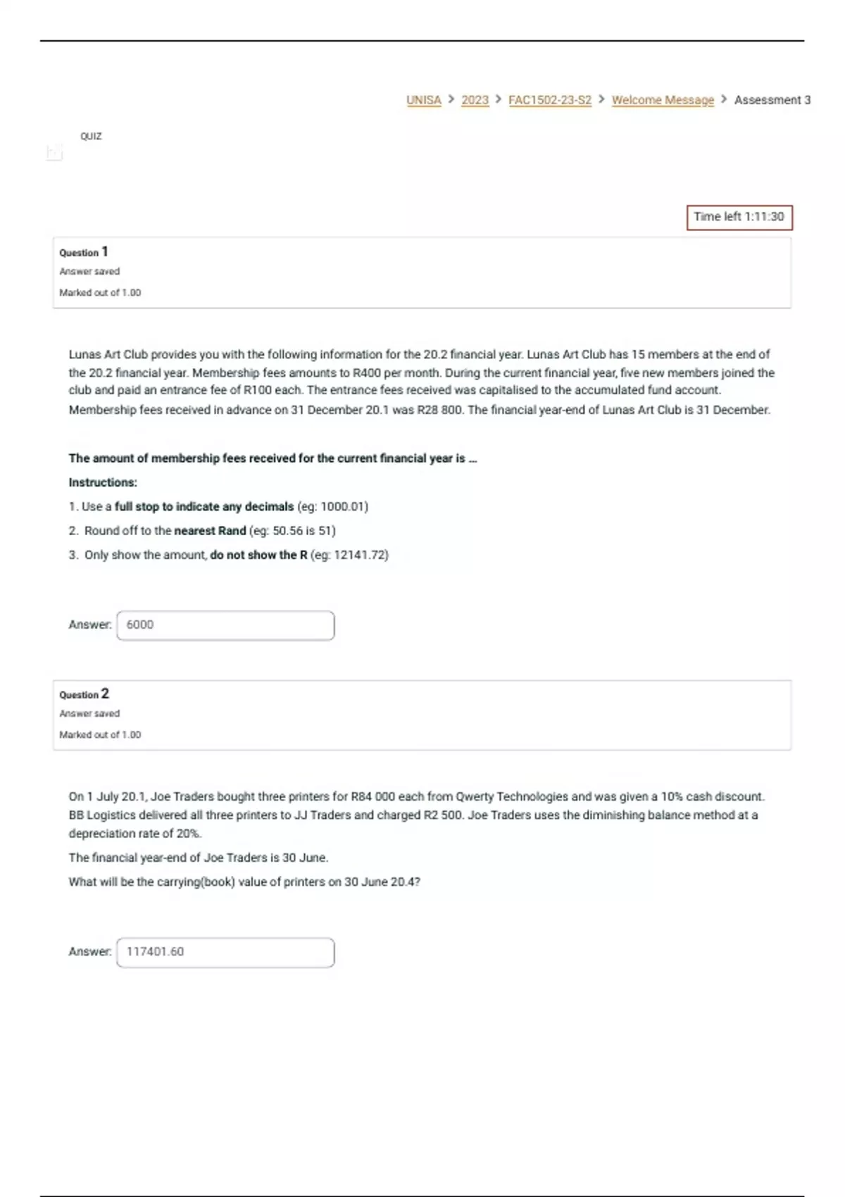 UNISA  2023  FAC1502-23-S2  Welcome Message  Assessment 3