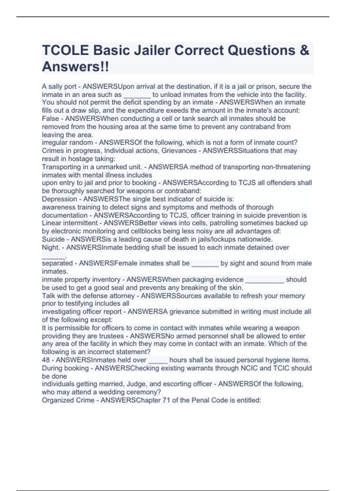 TCOLE Basic Jailer Correct Questions & Answers!!
