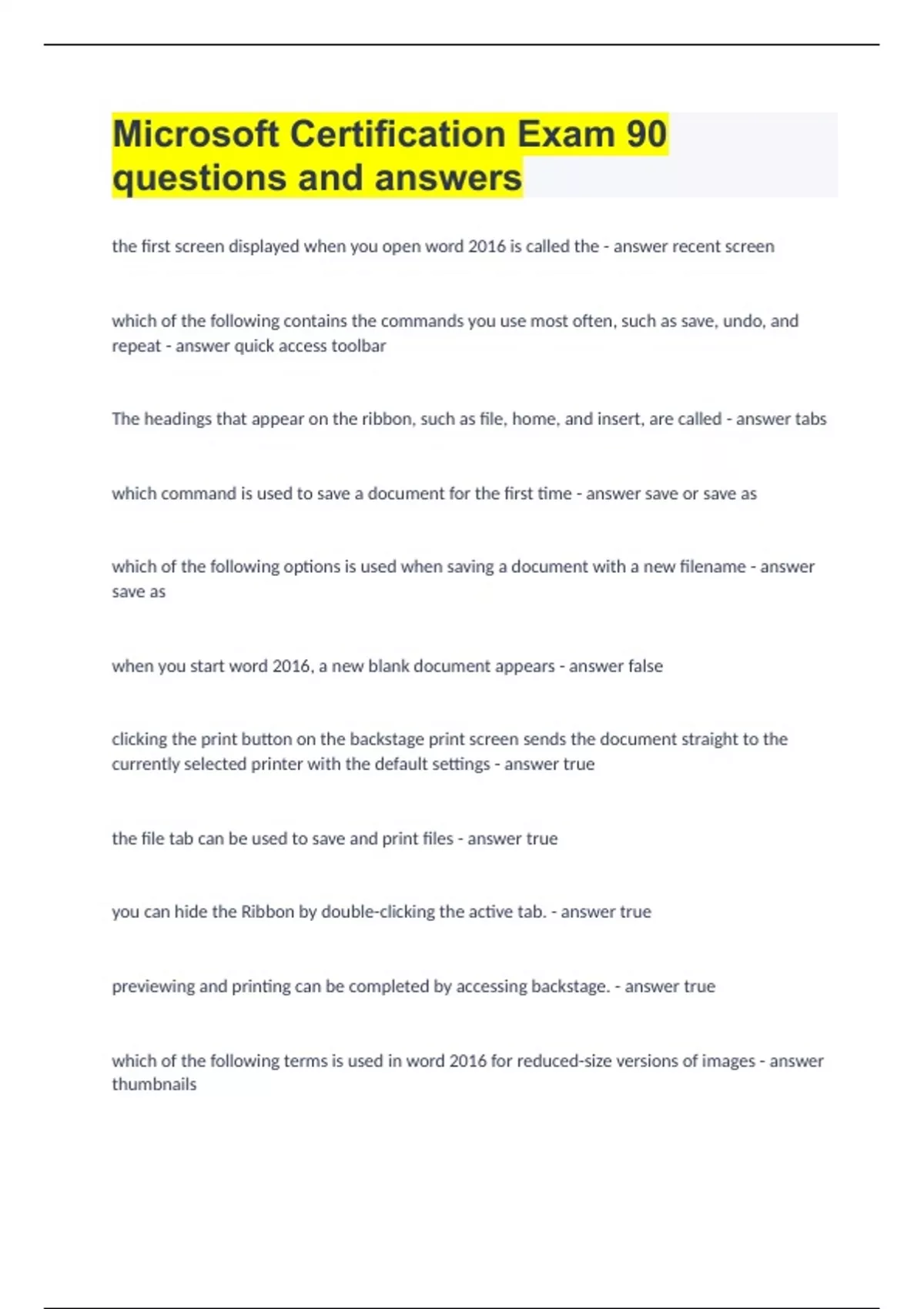 Microsoft Certification Exam| 90 questions and answers.