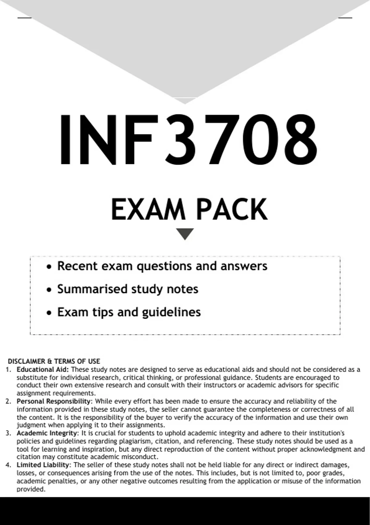 Well-structured INF3708 EXAM PREPARATION PACK - DISTINCTION GUARANTEED. Contains recent exam questions and answers, and Summarised study notes. All you need to pass the OCTOBER NOVEMBER 2023 EXAMS