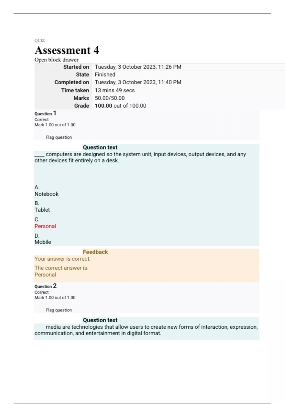 CIC2601 ASSIGNMENT 04 YEAR MODULE 2023. QUIZ ANSWERS. CONTINUOUS ASSESSMENT.