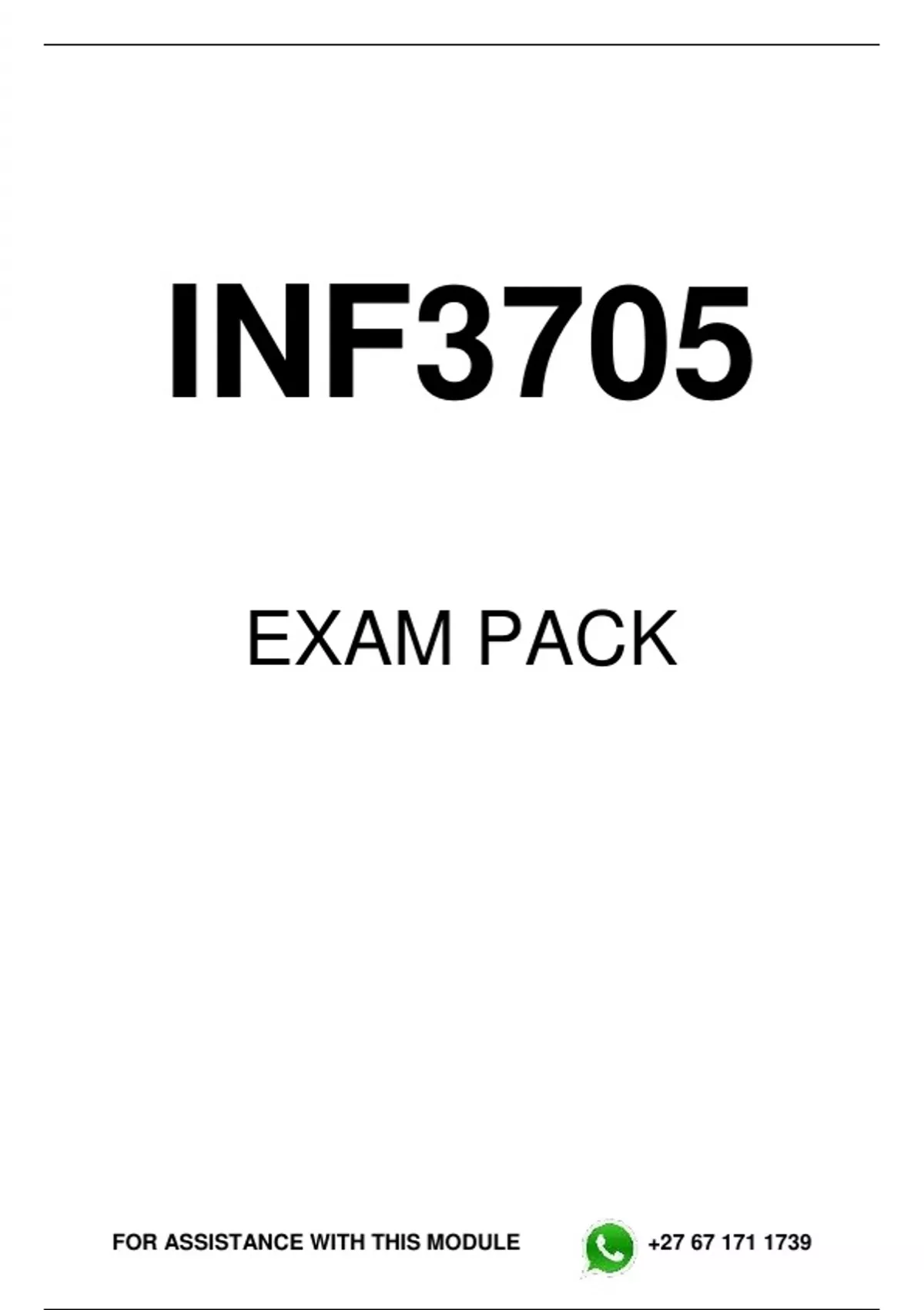 INF3705 Latest exam pack questions and answers and summarized notes for exam preparation. Updated for 2025 exams . For assistance Whats-App.0.6.7..1.7.1..1.7.3.9 . All the best on your exams!!