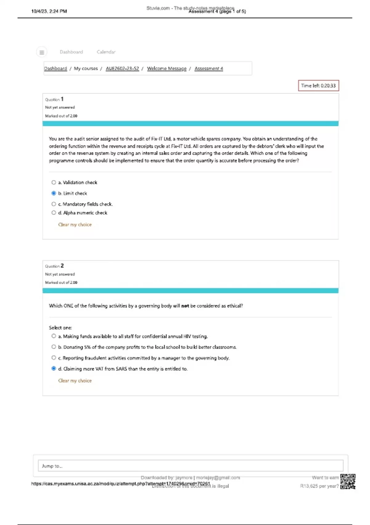 AUE Assignment 4 Semester 2 2023 Multiple attempts