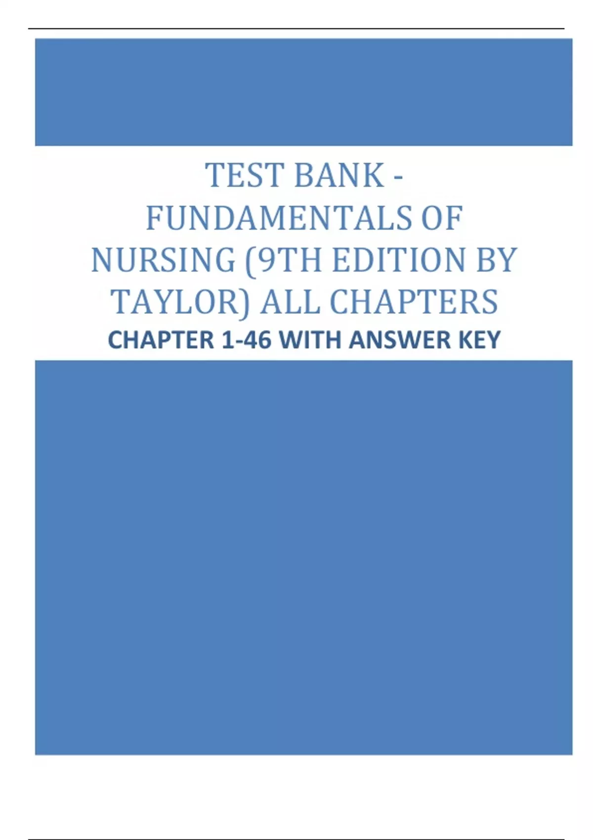 Fundamentals of Nursing 9th Edition by Taylor, Lynn, Bartlett Test Bank | Chapter 1-46