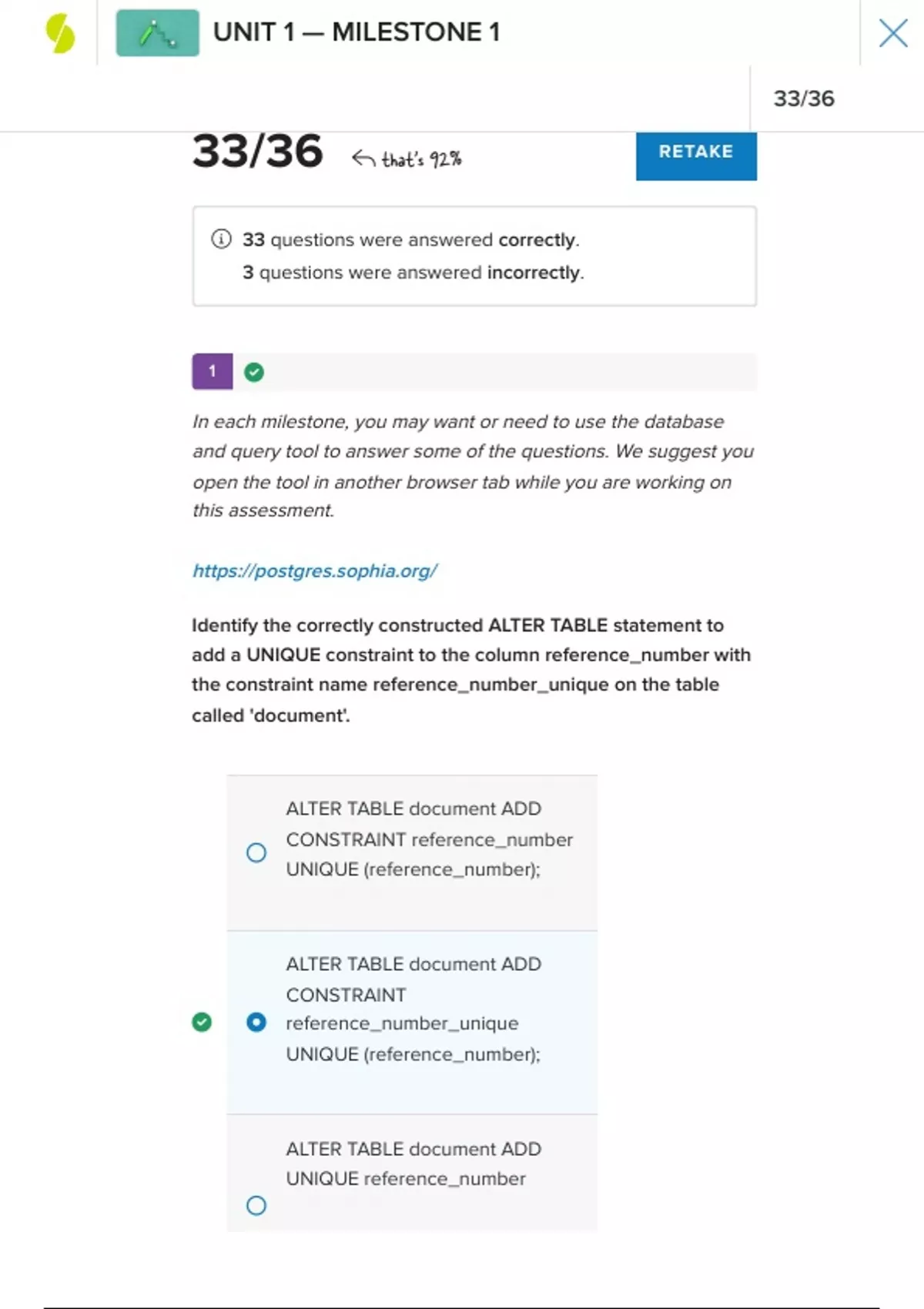 33/36 that's 92% RETAKE