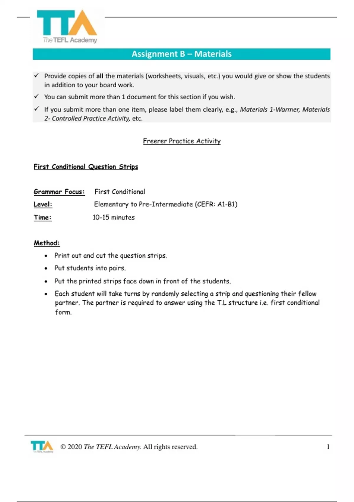 © 2020 The TEFL Academy. All rights reserved. 1