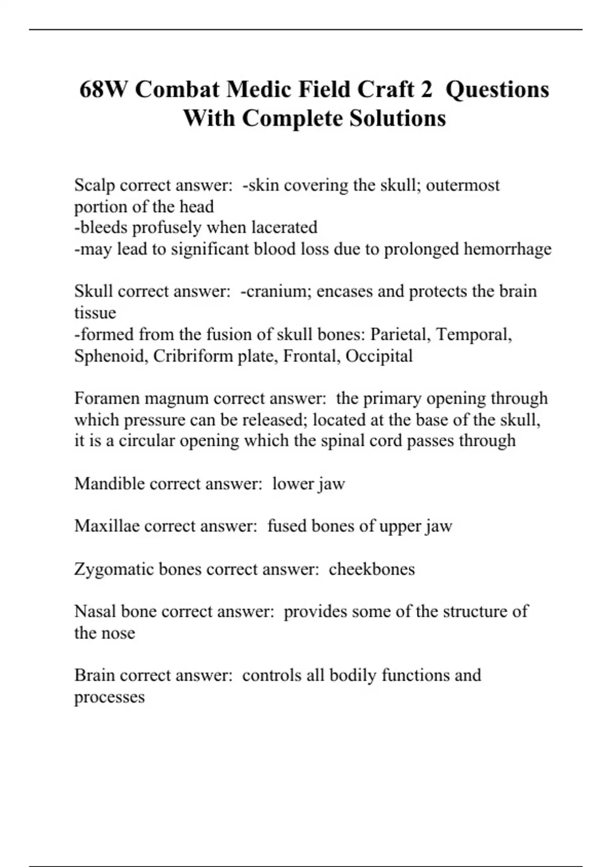 68W Combat Medic Field Craft 2 Questions With Complete Solutions