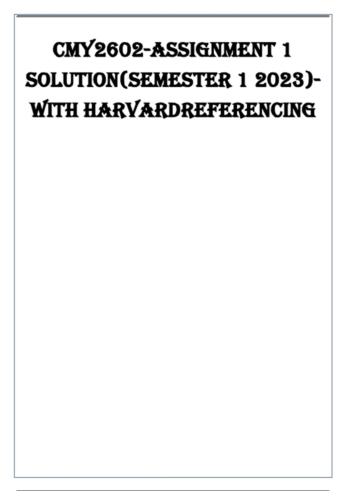 CMY 2602 ASSIGNMENT 1 SOLUTION 2023 WITH HAVARD REFERENCINGCMY 2602 ASSIGNMENT 1 SOLUTION 2023 WITH HAVARD REFERENCING