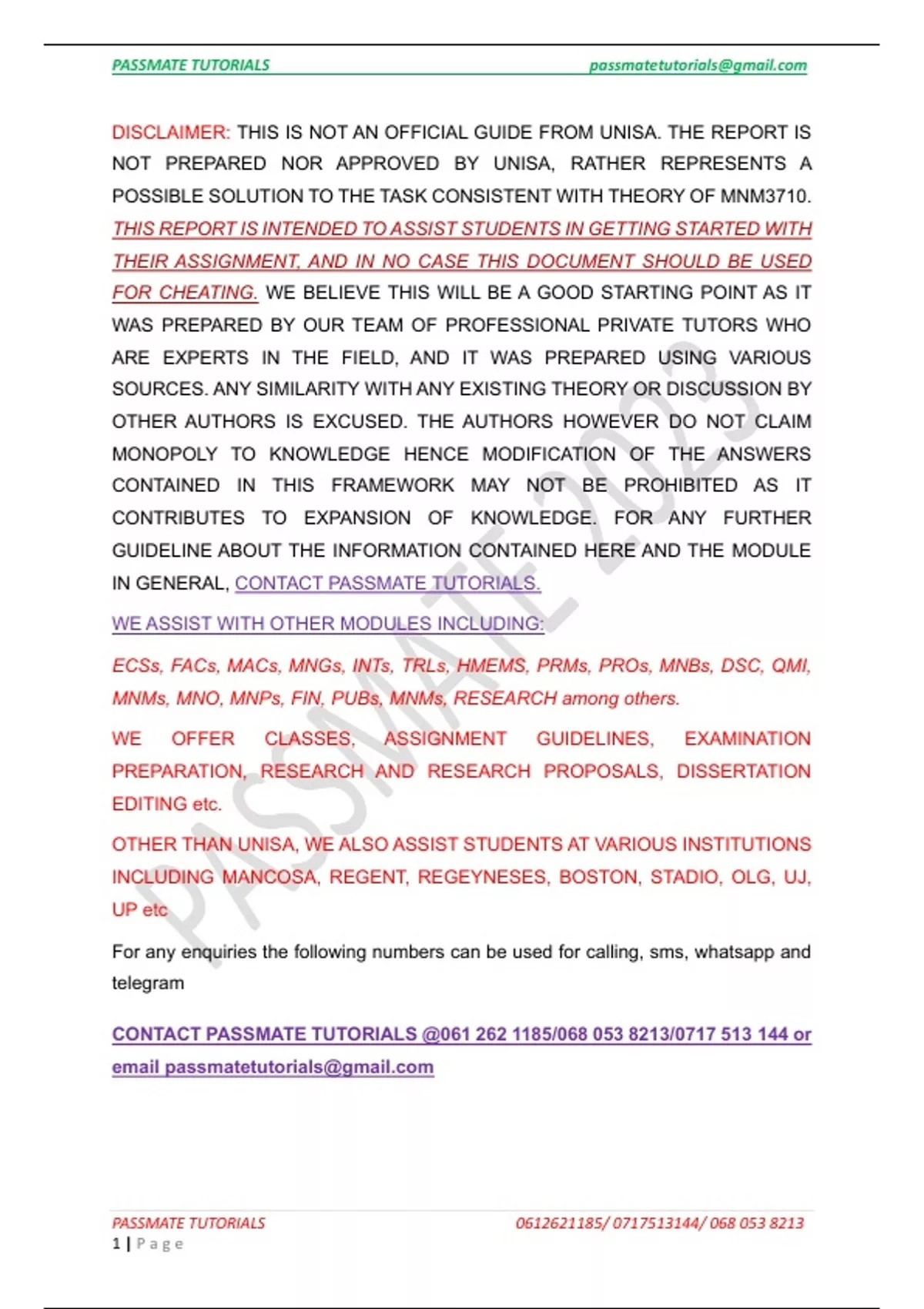 DISCLAIMER: THIS IS NOT AN OFFICIAL GUIDE FROM UNISA. THE REPORT IS