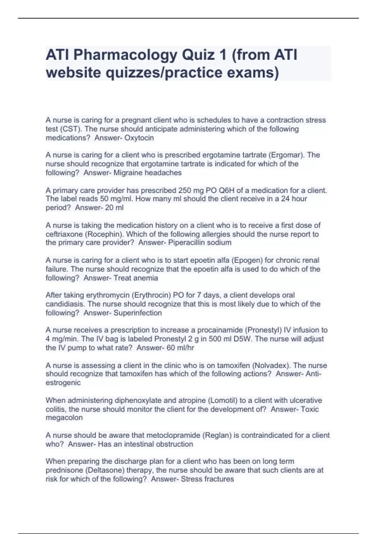 ati pharmacology quiz 1 from ati website quizzes