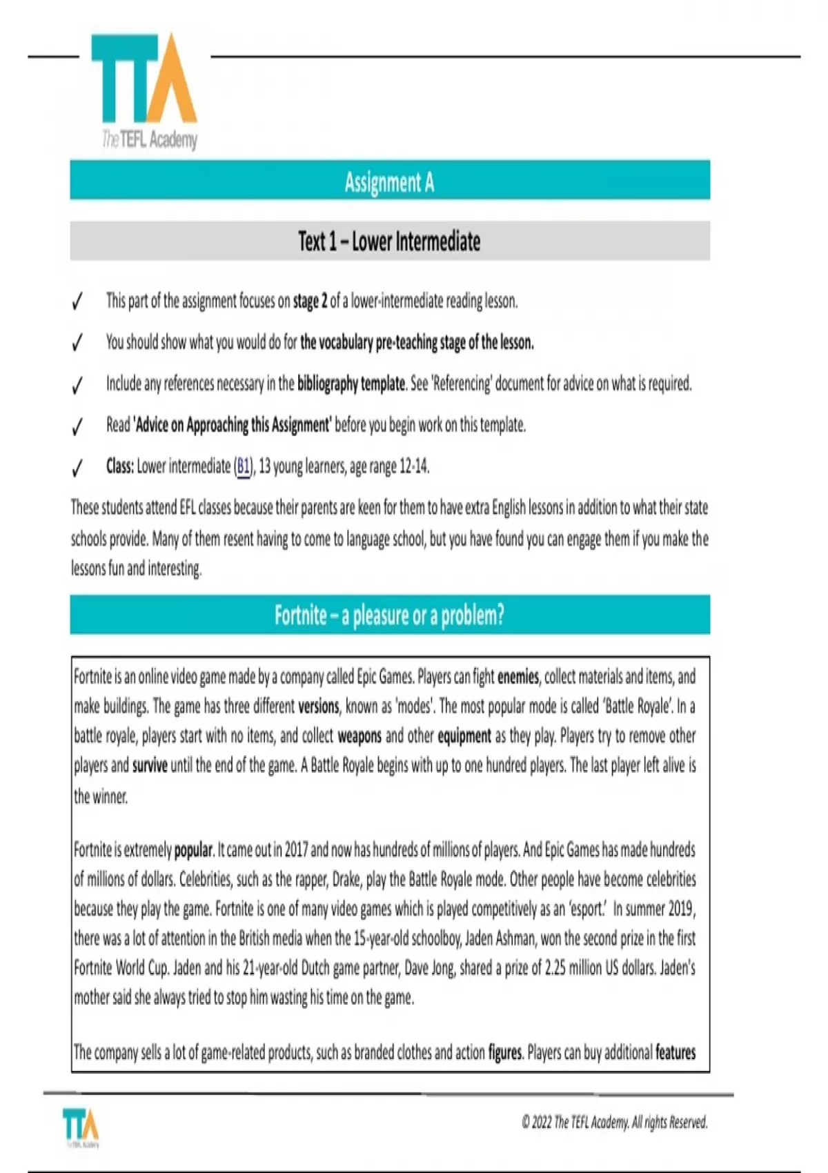 ✔ This part of the assignment focuses on stage 2 of a lower-intermediate reading lesson.
