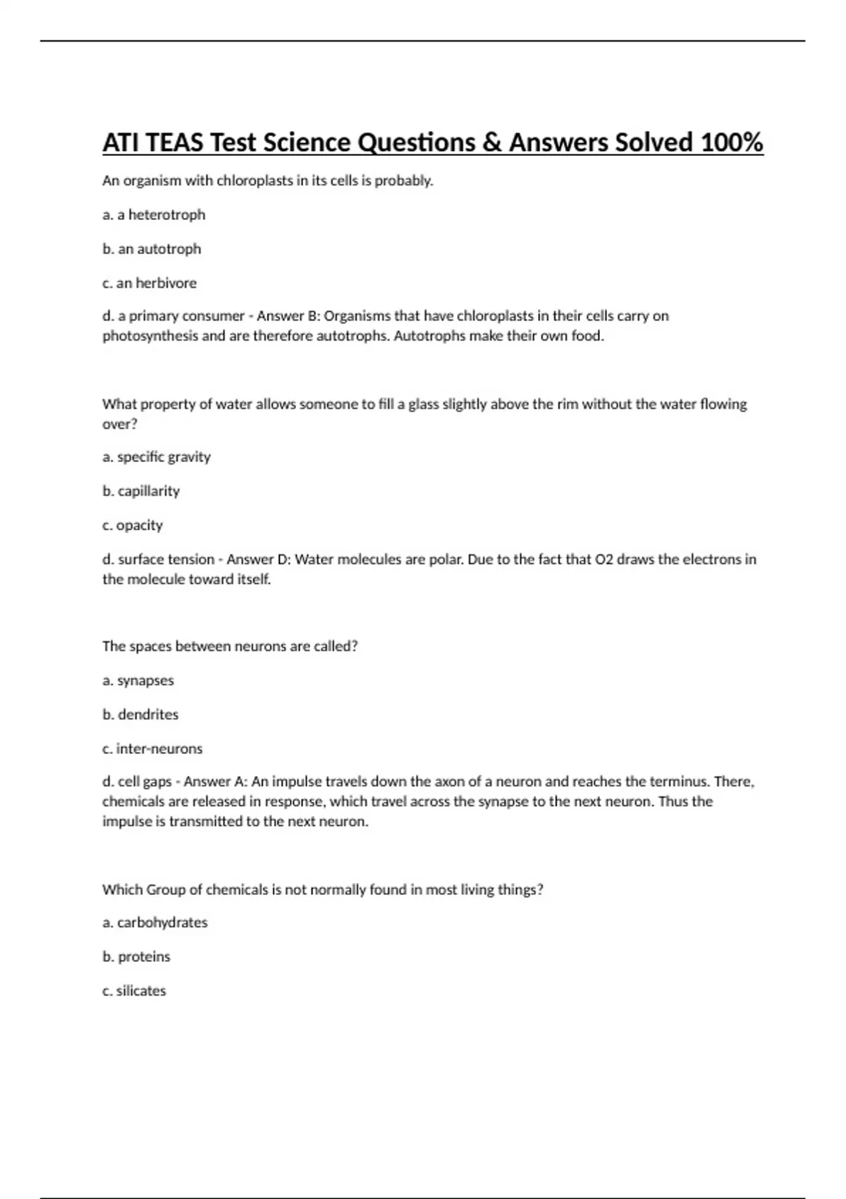 ATI TEAS Test Science Questions & Answers Solved 100%
