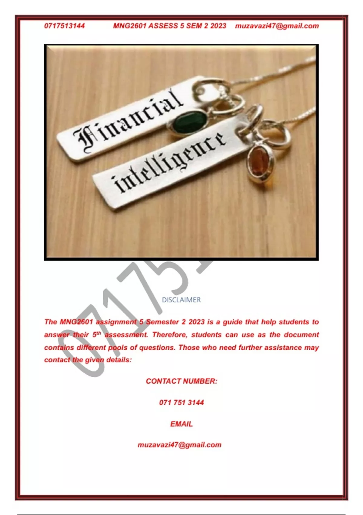 The MNG2601 assignment 5 Semester 2 2023 is a guide that help students to