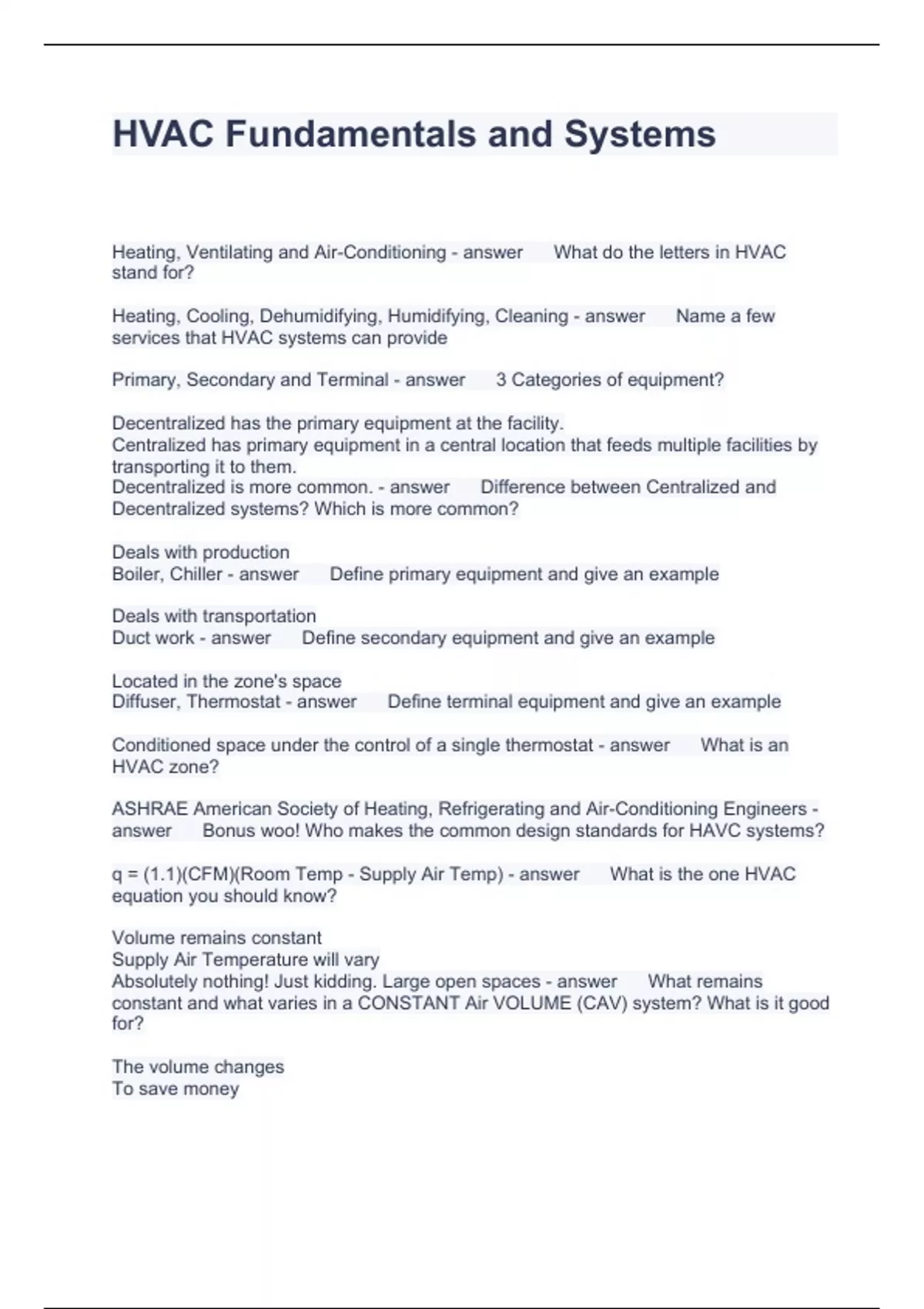 HVAC Fundamentals and Systems Questions and Answers, Fully solved 2023