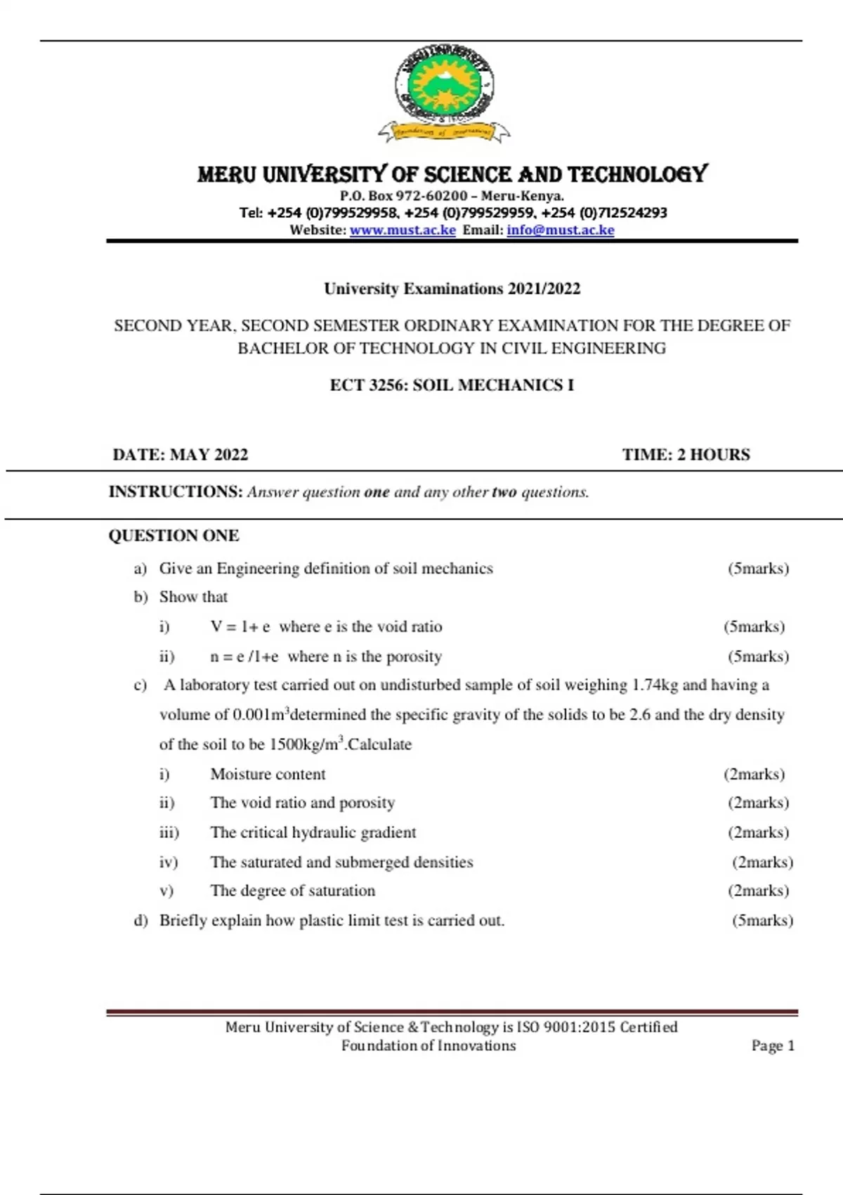 d) Briefly explain how plastic limit test is carried out. (5marks)