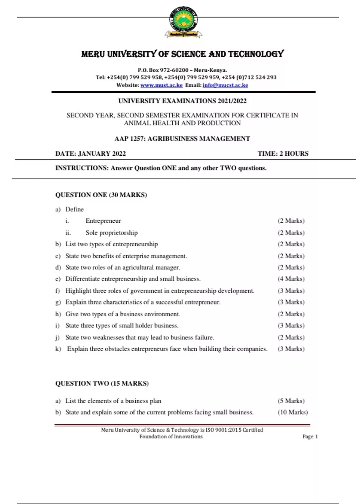 AAP 1257: AGRIBUSINESS MANAGEMENT